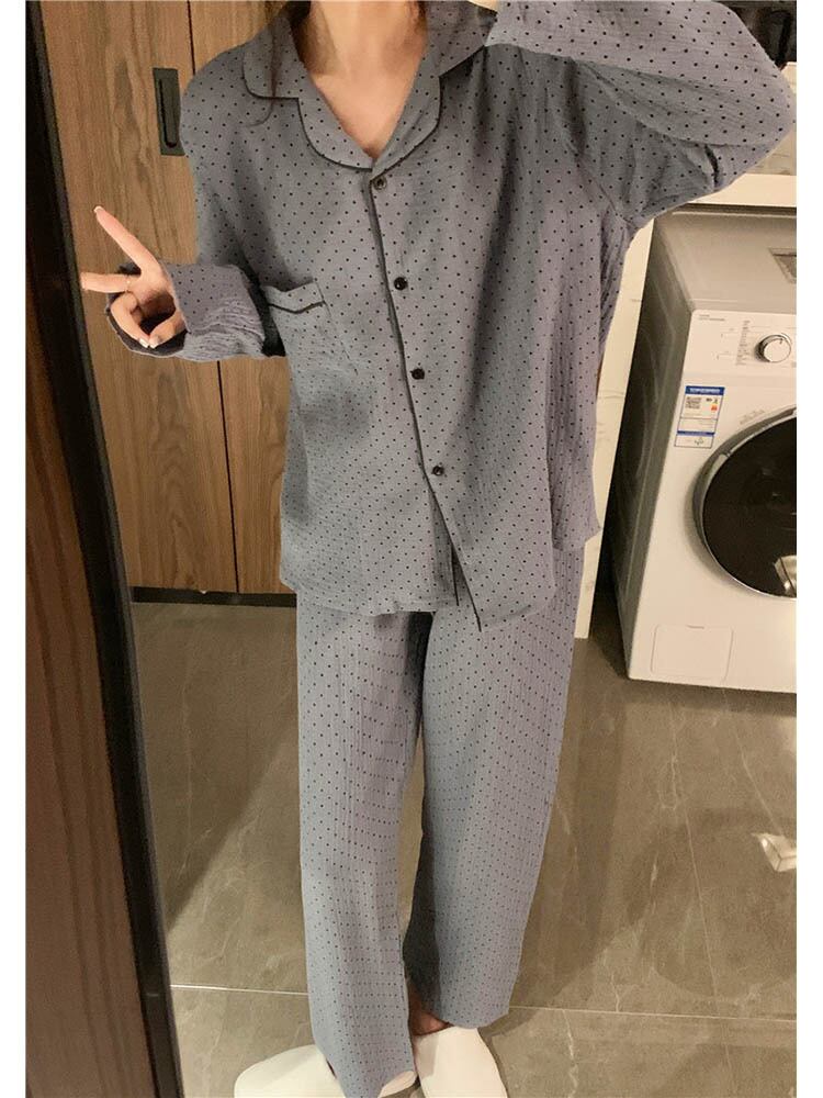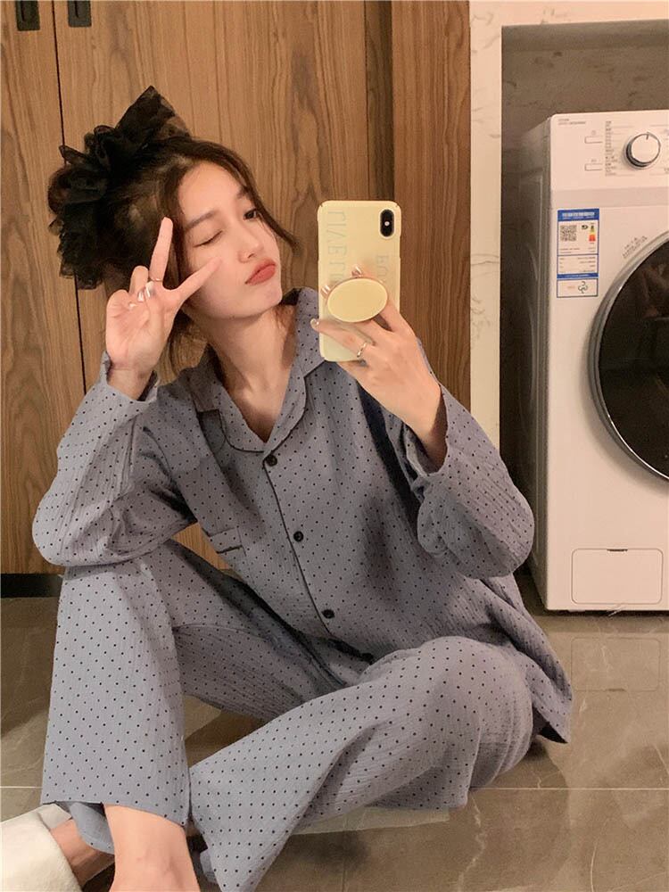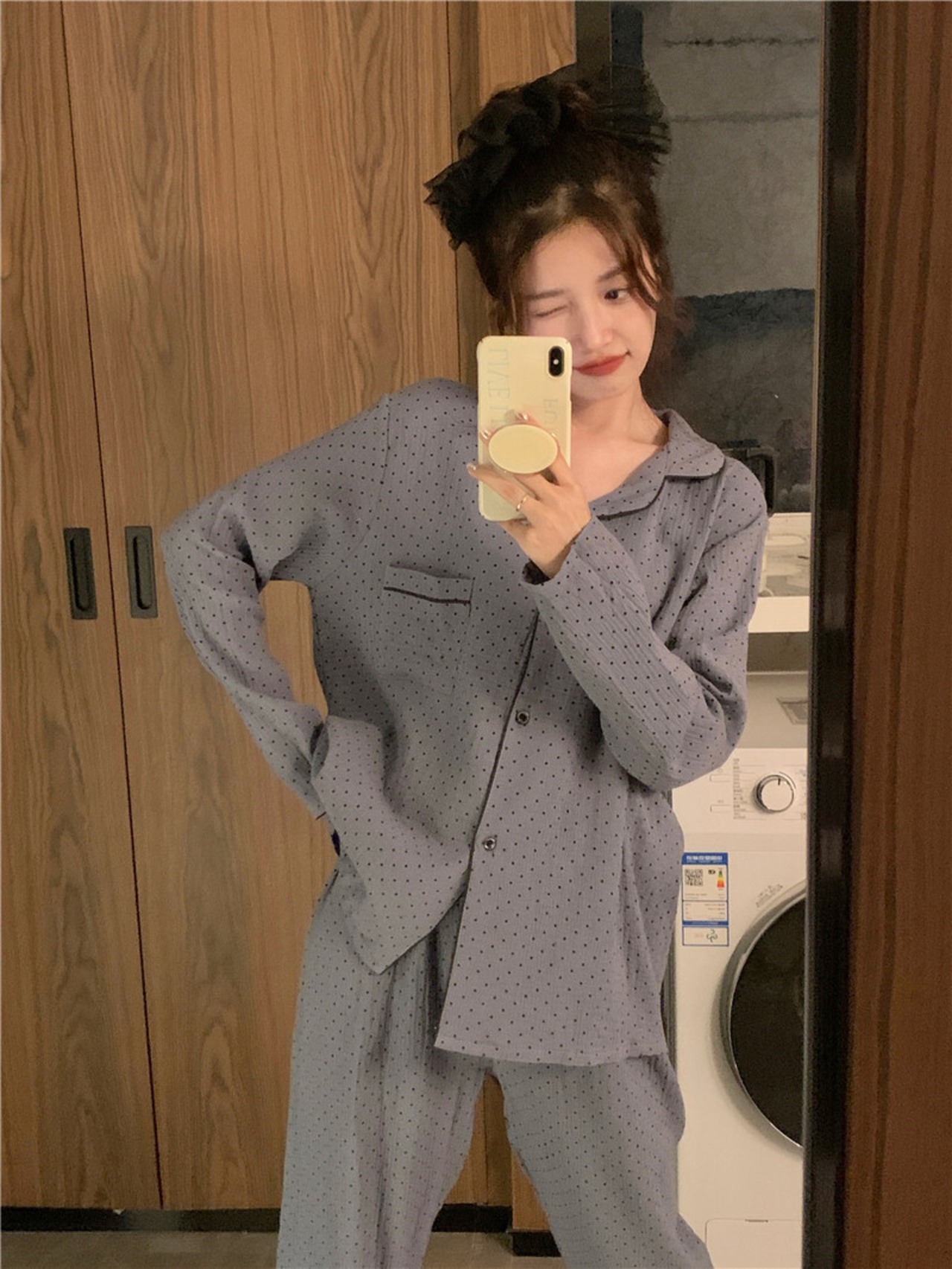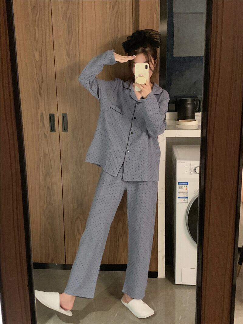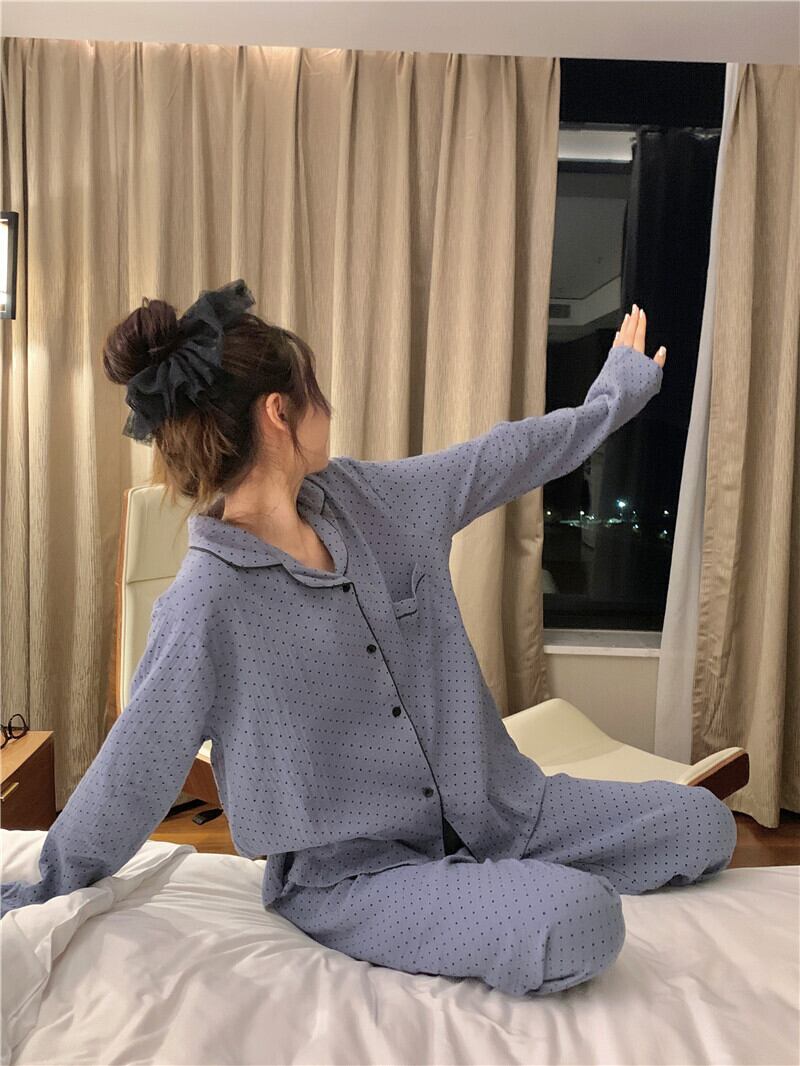 レディース ツーピース セット ルーズ ウェーブ ポイント ロングスリーブ Tシャツ ゴムウエスト スリーピングパンツ パンツ 2ピース 秋セット 長袖 エラスティック 伸縮 オータム 秋物