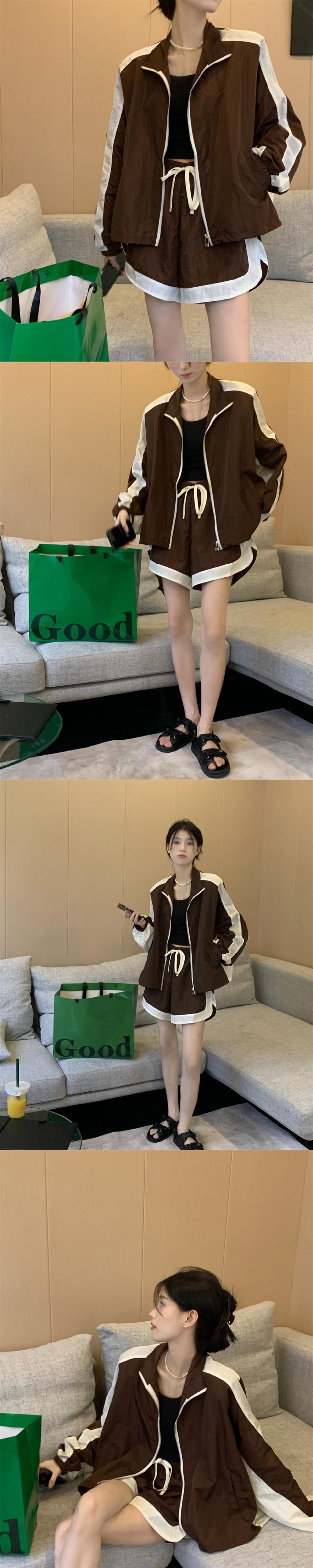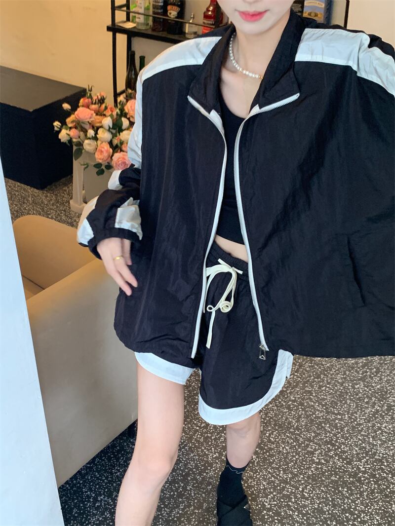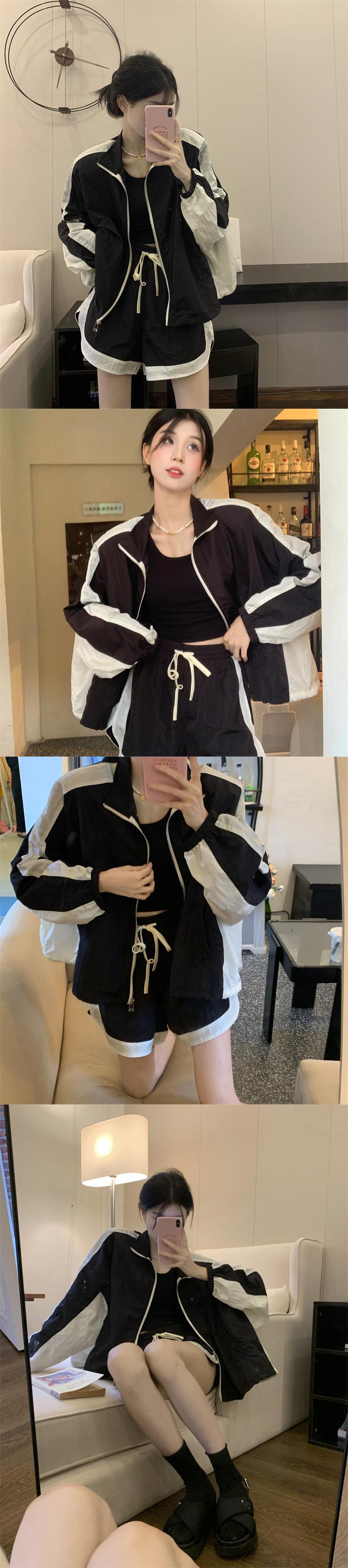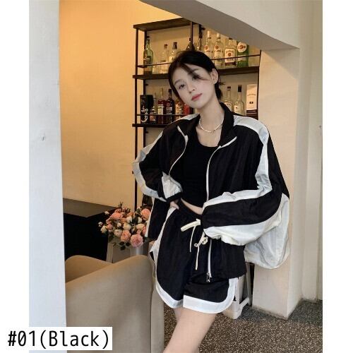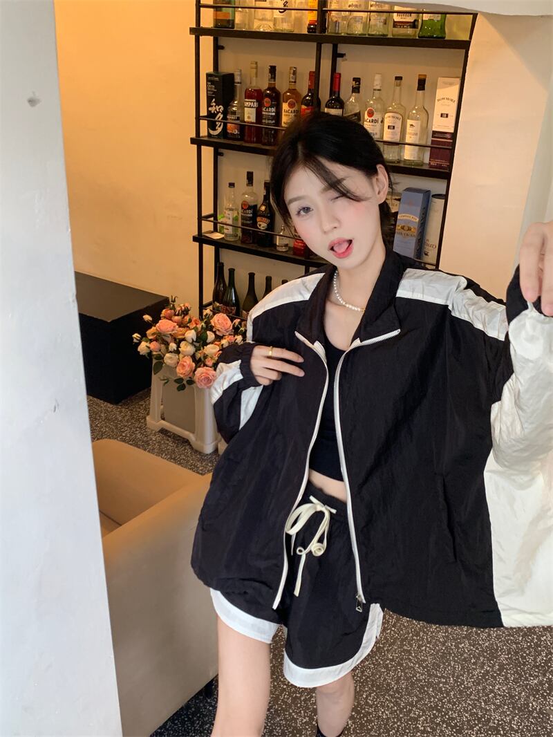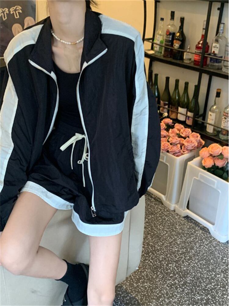 Gothiscyn スポーツスーツ日焼け防止ジャケットトップ夏巾着ショーツ気質ツーピースセット サマー 夏物 ブルマー