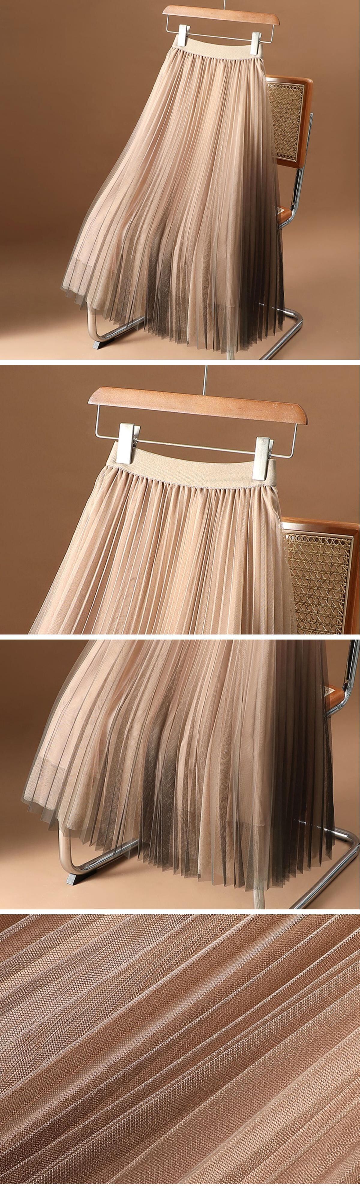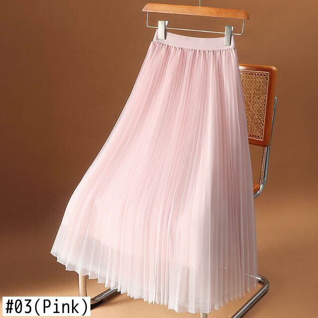 グラデーション メッシュ スカート レディース春夏ミッドレングス ウエスト プリーツ スカート A ライン ロング スカート服 スプリング 春物 サマー 夏物 Aライン