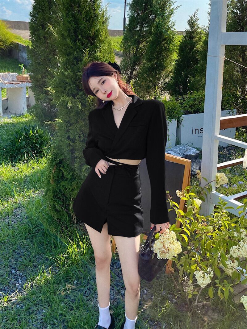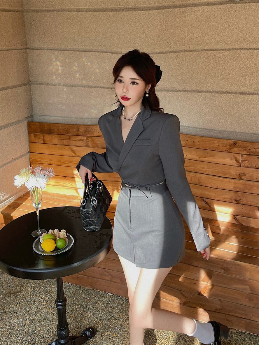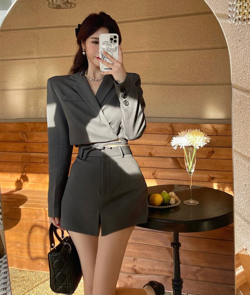 春先 万能スーツ レディース シンプル グレード ストラップ スプリットスーツ コート ウエストスカート ショーツ 2点セット スプリング 春物 ブルマー