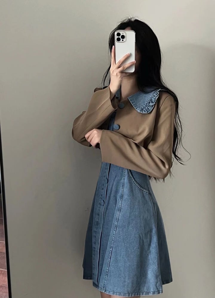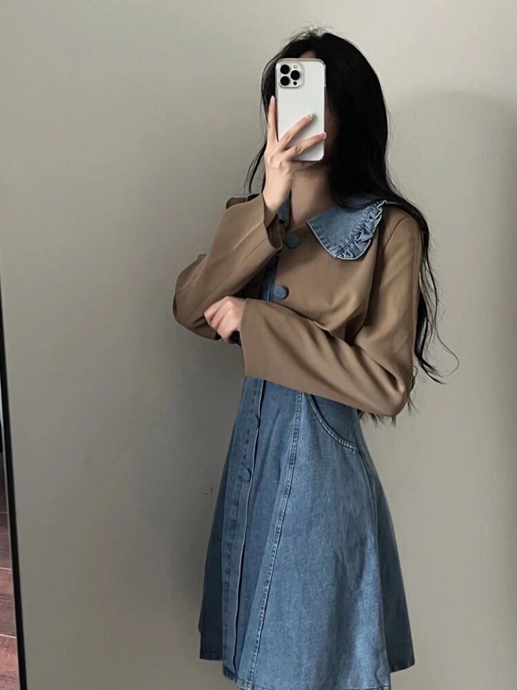 Gothiscyn 春先スーツジャケットレトロスリムデニムスカート 2 点セットオフィスレディ夏 スプリング 春物 サマー 夏物 会社 学校 通勤や通学にも