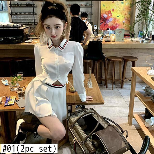 スウィートガールズスタイルスーツ長袖シャツウエスト A ラインプリーツスカート 2 点セット服 ロング 大人ガーリー キュート カジュアル Aライン