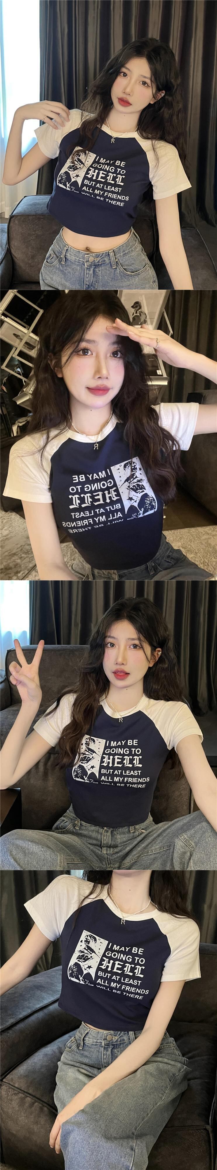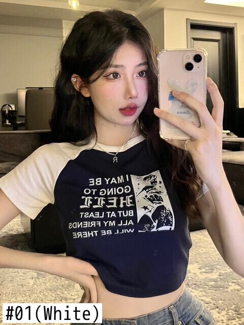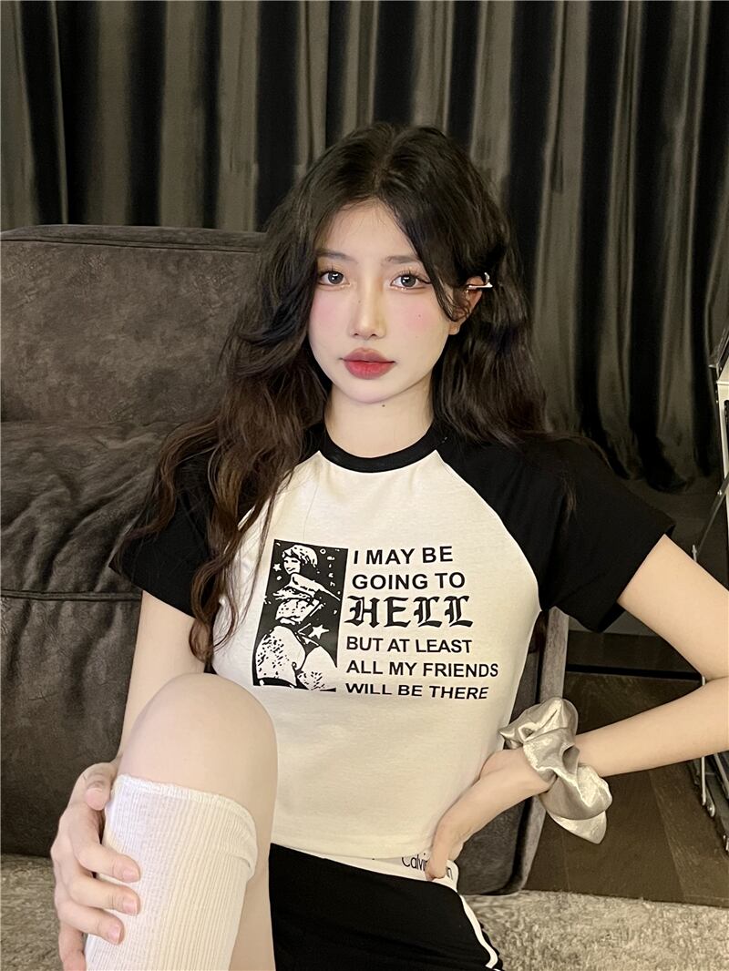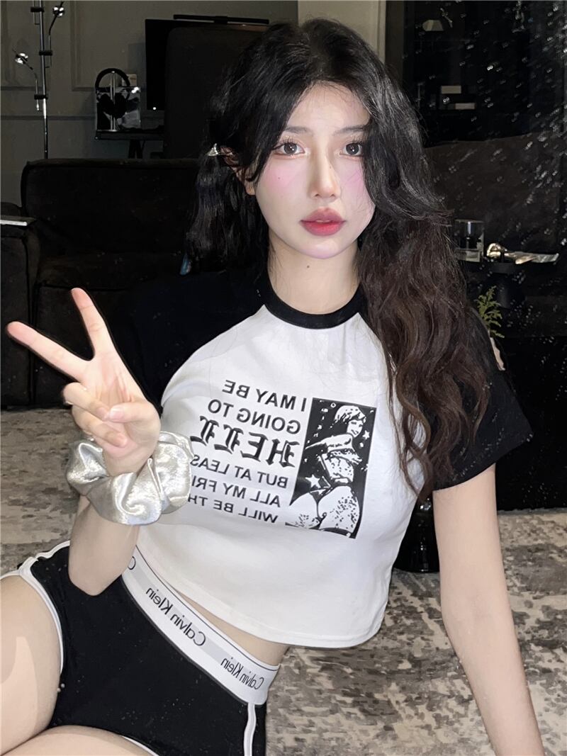 Gothiscyn レトロ半袖 Tシャツ夏カードウエストシャツレタープリントトップ美的 Tシャツ Y2k Tシャツ美的 ショート ハーフスリーブ サマー 夏物