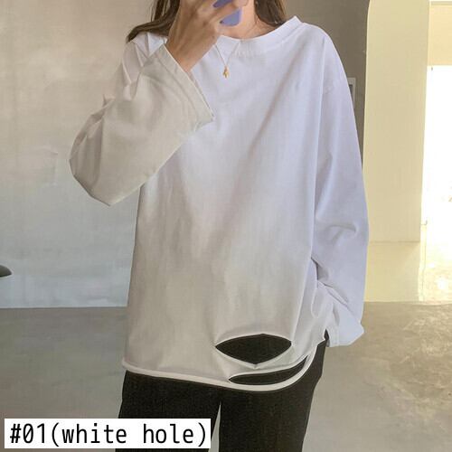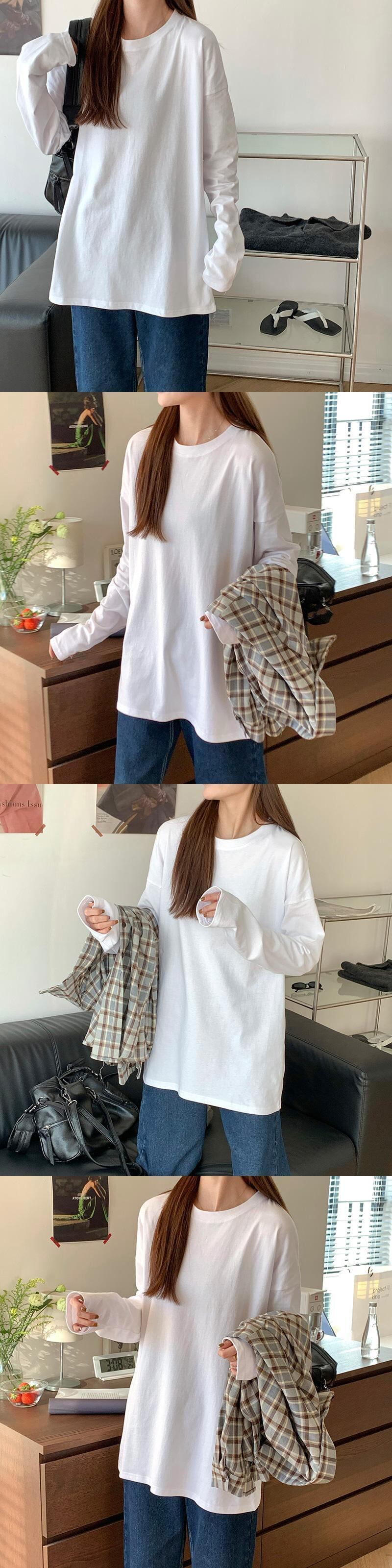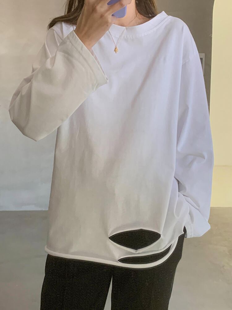 長袖 Tシャツ オーバーサイズ Tシャツ 無地 トップス コットン Oネック Tシャツ ボトムス Tシャツ プレッピー 春秋 レディース インナートップ ロング スプリング 春物 オータム 秋物 ソリッドカラー
