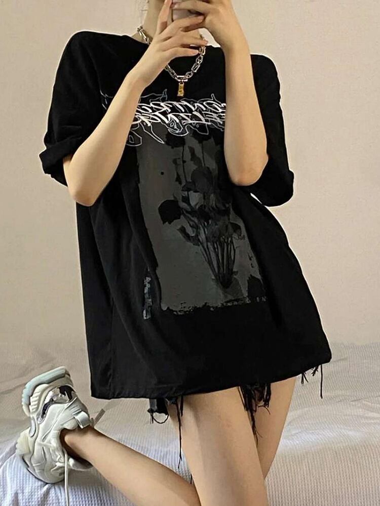 Gothiscyn Tシャツ黒特大半袖 O ネック Tシャツ夏 Kpop Y2k 美的原宿ゴシックパンク Tシャツ ショート ブラック ハーフスリーブ かわいい サマー 夏物 Oネック