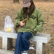 スウェットレタープリント Kpop 服 O ネック原宿特大パーカー長袖パーカープレッピースタイル ロング シャツ かわいい Oネック