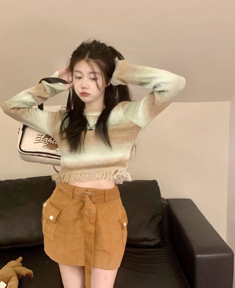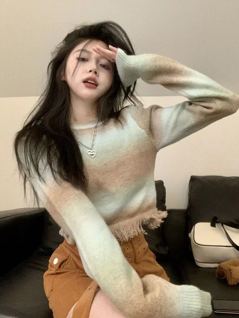 特大セーター Tel グラデーション長袖セーター ルーズ フィット トップス プルオーバー 秋/冬婦人服 ロング オータム 秋物 ウィンター 冬物