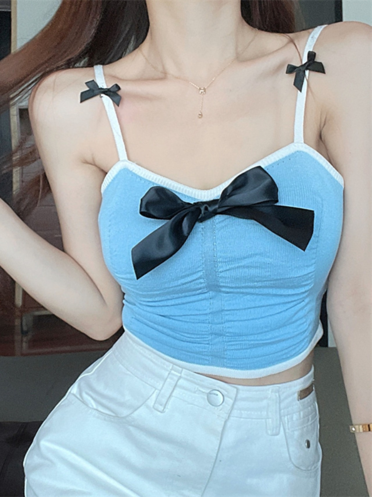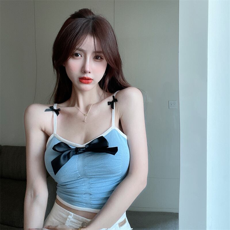 Gothiscyn レディース タンク キャミソール ボウ クロップ トップ セクシー スキニー サマー ホルター トップ Y2k トレンディ リボン 夏物