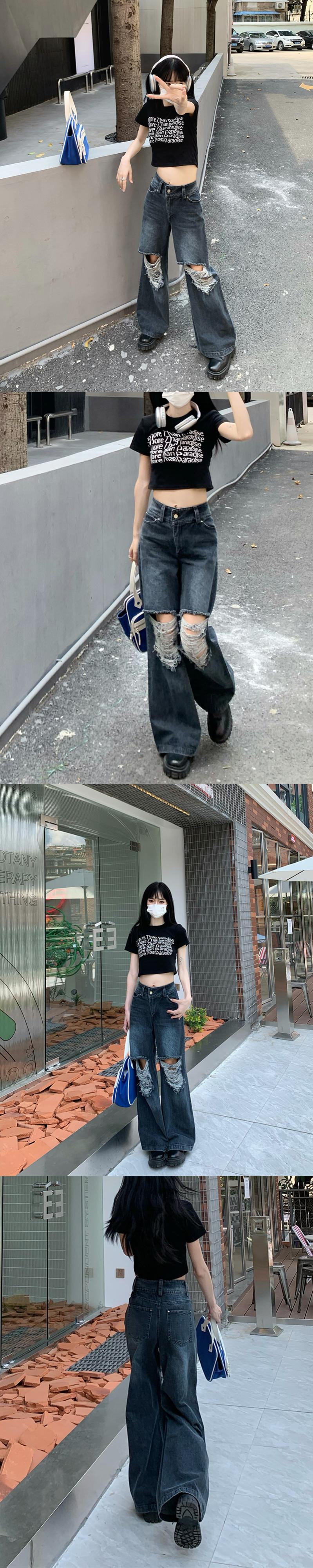 ダメージジーンズ レディース パンツ ルーズ ワイドレッグ 夏 レトロ 乞食パンツ モップパンツ ズボン Y2k グランジ 原宿 かわいい サマー 夏物 ワイドパンツ