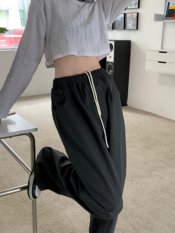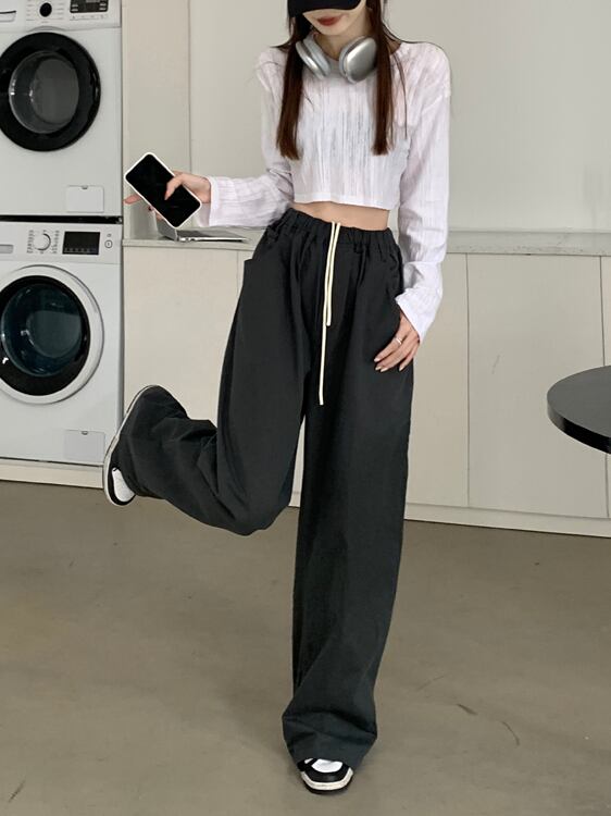 床長さスウェットパンツ ストリート レディース服サイズ ズボン ルーズ ワイドレッグ カーキ パンツ スタイル パンツ ワイドパンツ