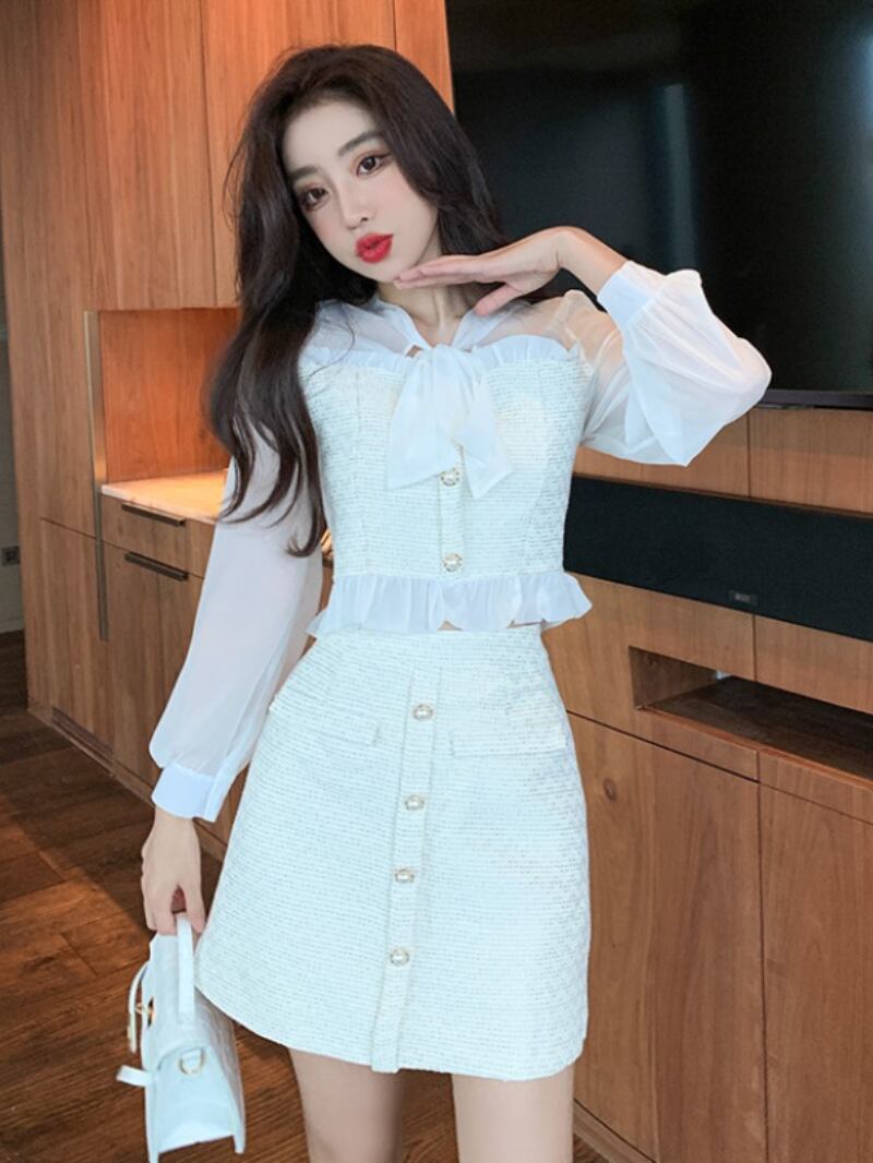 オフィスレディスーツ秋冬気質セレブVネックシャツウエストスカート2点セット オータム 秋物 ウィンター 冬物 会社 学校 通勤や通学にも