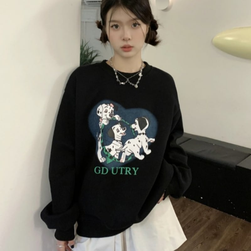 パーカー漫画プリント原宿パーカー緩い O ネックプルオーバースウェットシャツプレッピースタイル秋特大 かわいい オータム 秋物 Oネック
