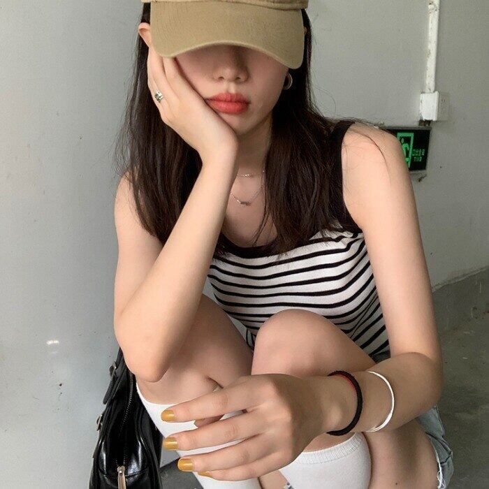ストライプ ベスト キャミソール サスペンダー夏ニッチ フレンチ スタイル ノースリーブ Y2k クロップ トップ原宿 かわいい サマー 夏物