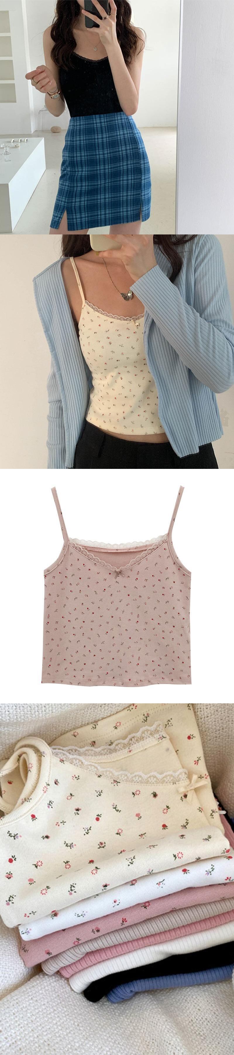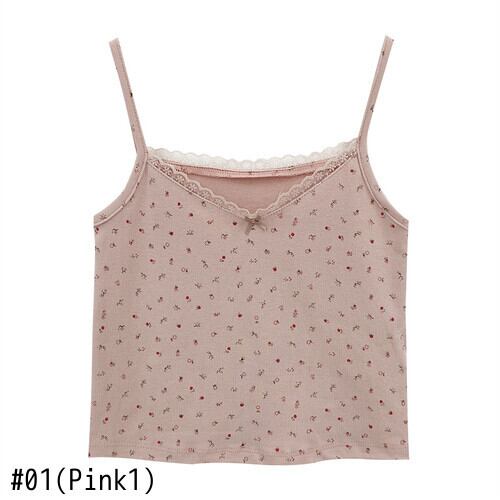 ニット 夏 キャミソール 花柄 サスペンダー インナー ボトムス レース エッジ チューブトップ ベスト 上着 ショート セクシー タイト ノースリーブ サマー 夏物
