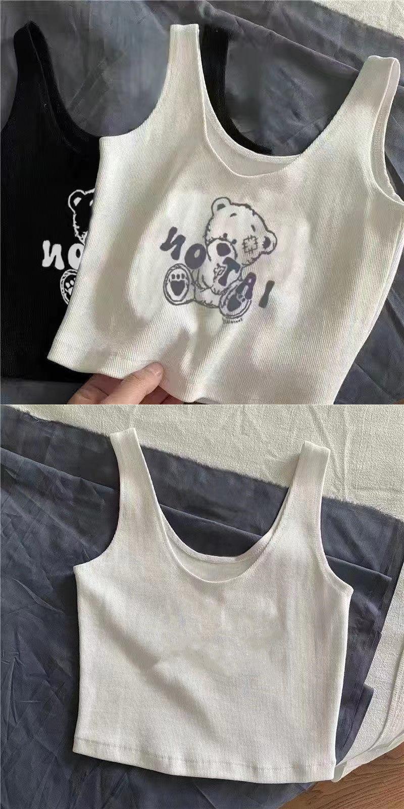夏アウター タンクトップ レディース ベアプリント スリム ショート ベスト インナー 学生 オールマッチ スポーツ ヨガ ランニング スリング Y2k 服 サマー 夏物