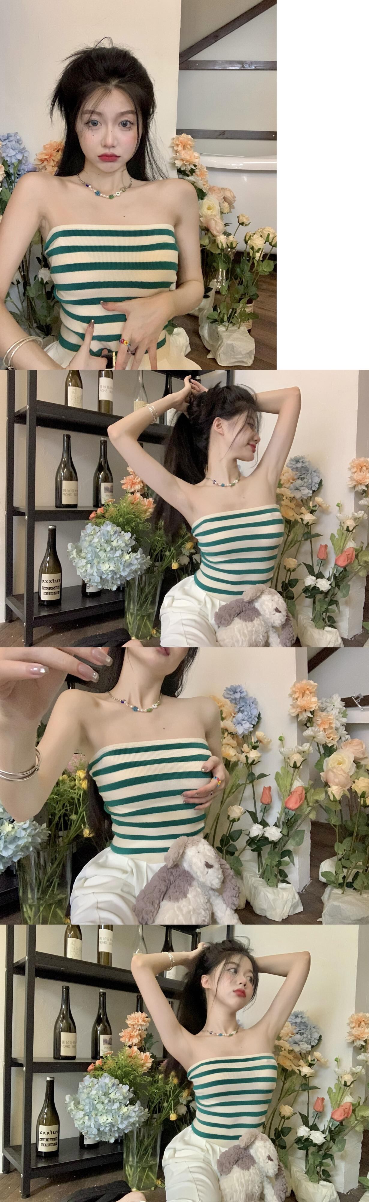 Gothiscyn キャミソールストラップレスストライプセクシーベストホットガールズサマーノースリーブスリムフィットキャミソール服 夏物