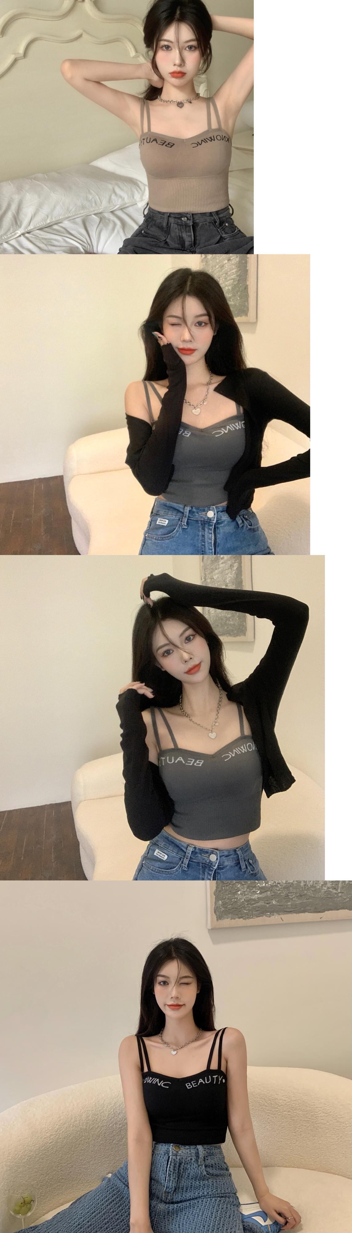 Gothiscyn セクシータンクキャミソールサスペンダーピンクスキニーサマーベストホットガールノースリーブ下着ニットトップクロップトップス 夏物