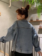 デニム クロップド ジャケット 春 香港風 復古 BF風 服 シングルブレスト 長袖 コート ロング レトロ スプリング 春物