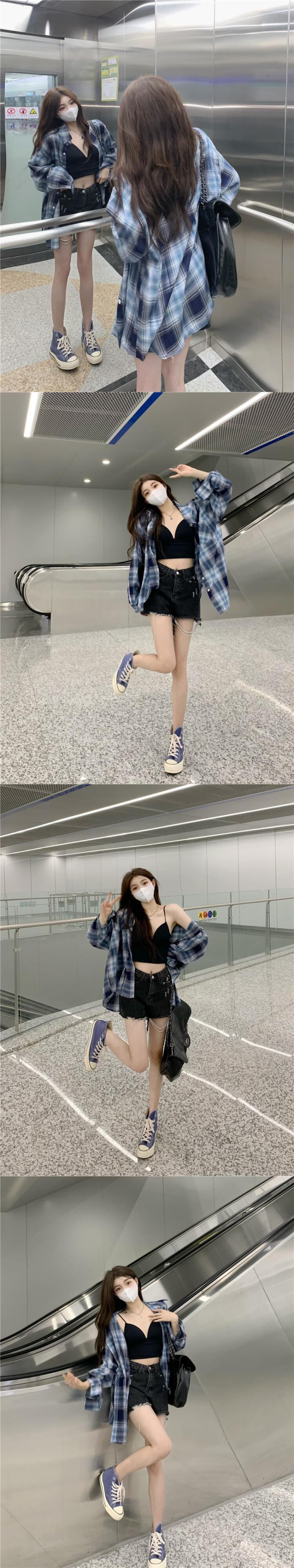 ブラウススタイルスリムチェック柄日焼け止めシャツジャケット夏レトロルーズロングスリーブカーディガン秋服 長袖 サマー 夏物 オータム 秋物