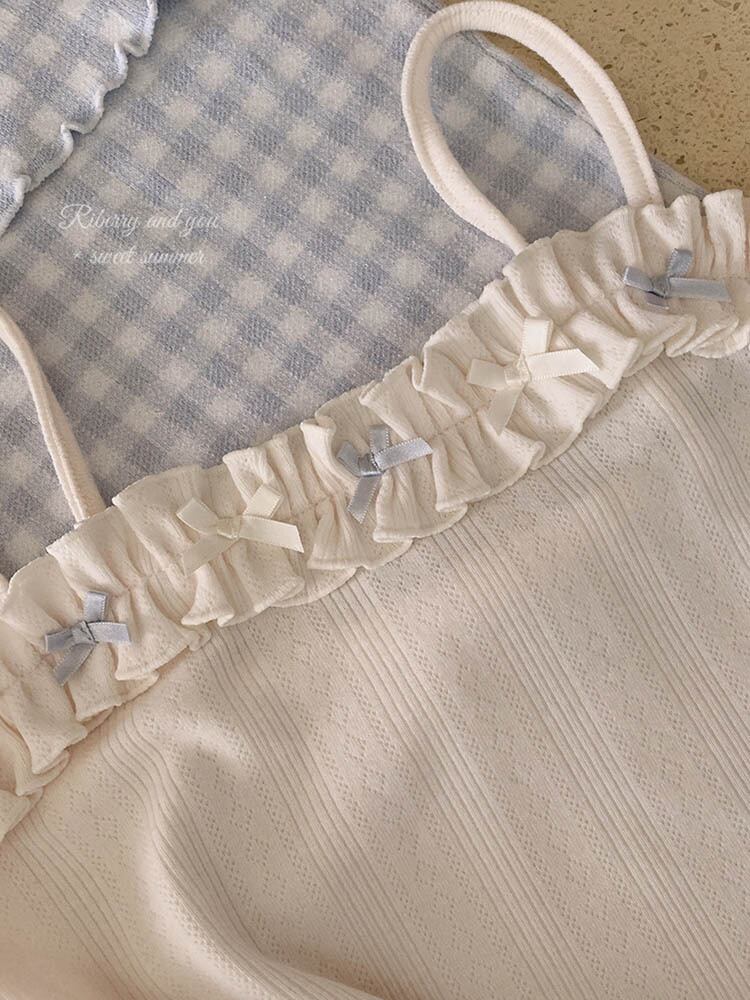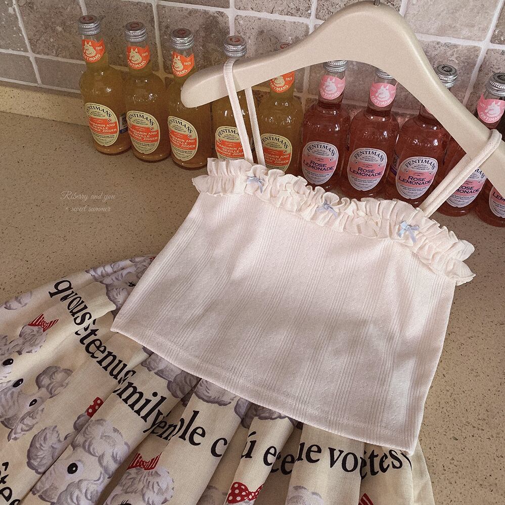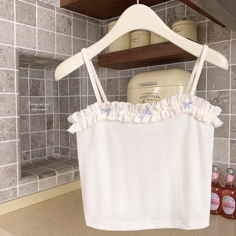 タンクトップ レース プル プリーツ リボン ボウ サスペンダー ベスト かわいい トップス ノースリーブ 無地 キャミソール レース 服 大人ガーリー スウィート キュート カジュアル ソリッドカラー