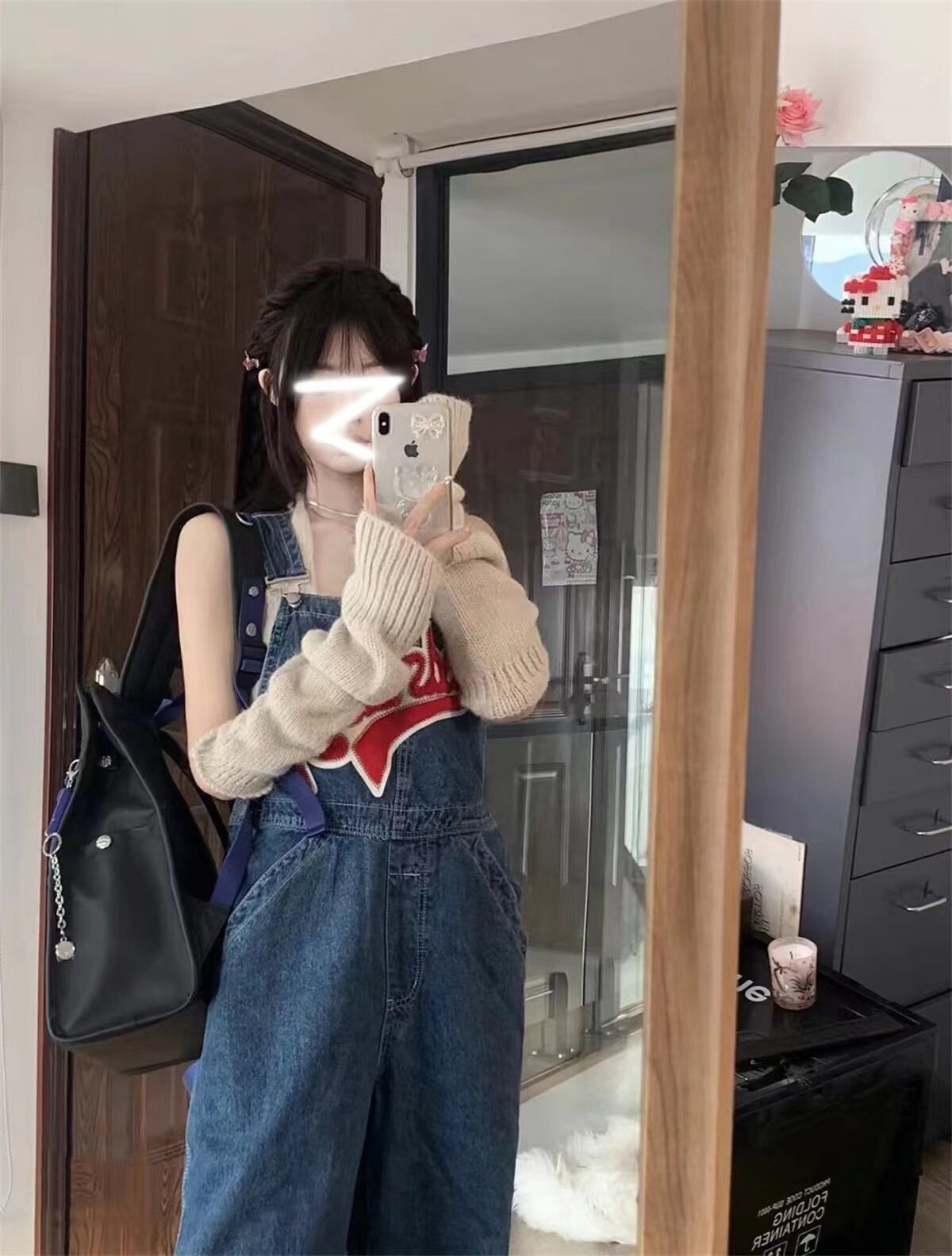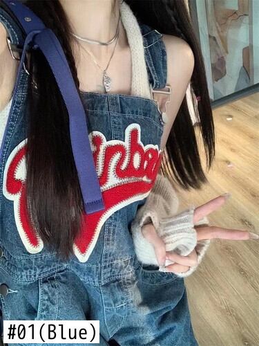 デニム ストラップ パンツ レディース 夏 アメリカン 刺繍 ゆったり ワイドレッグ 床引き パンツ 服 レッド サマー 夏物 ワイドパンツ