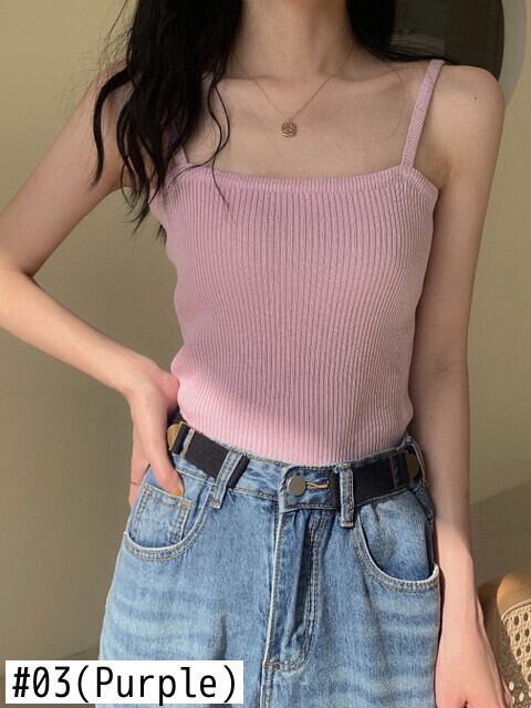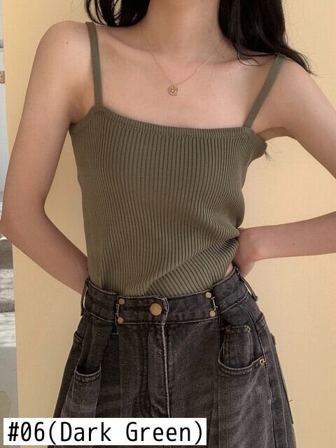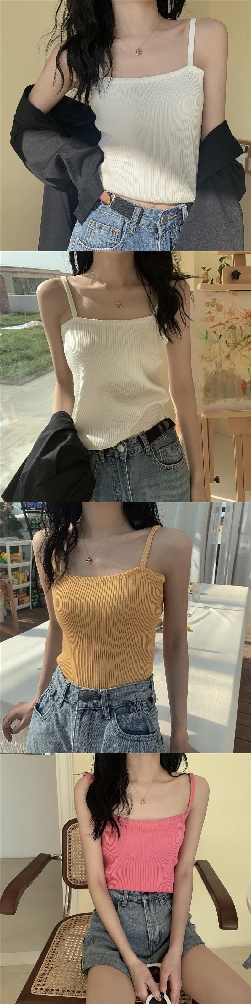 Gothiscyn 夏タンクトップ黒ニットキャミソールスキニー底入れシャツガールノースリーブセクシークロップトップス ブラック サマー 夏物