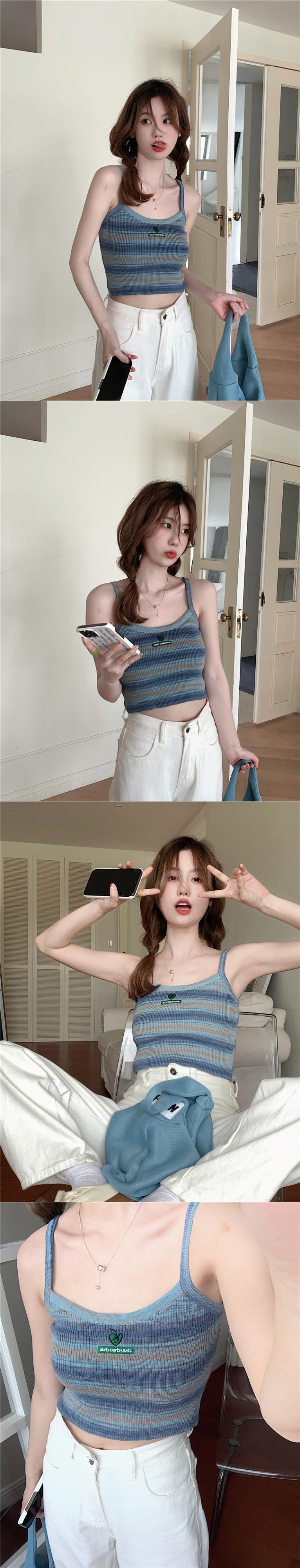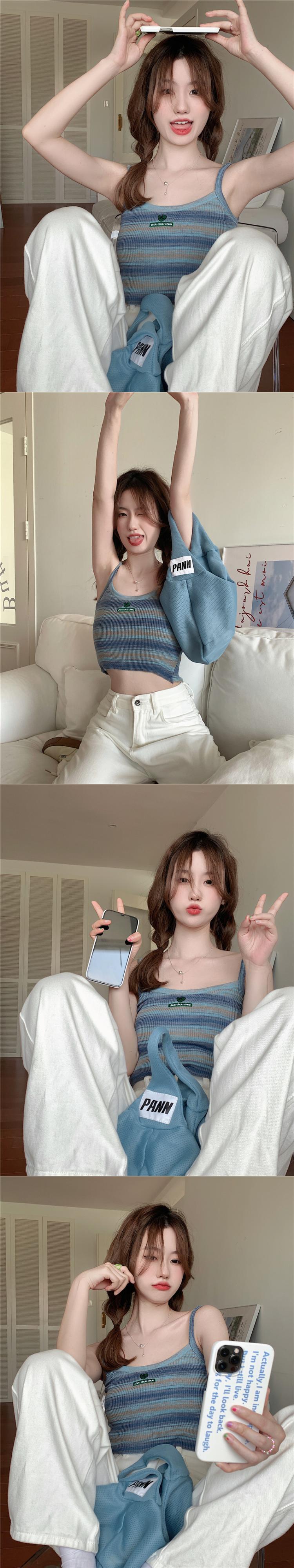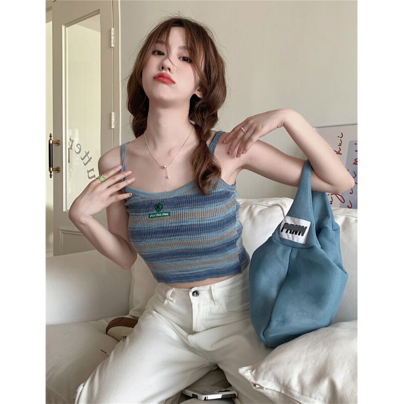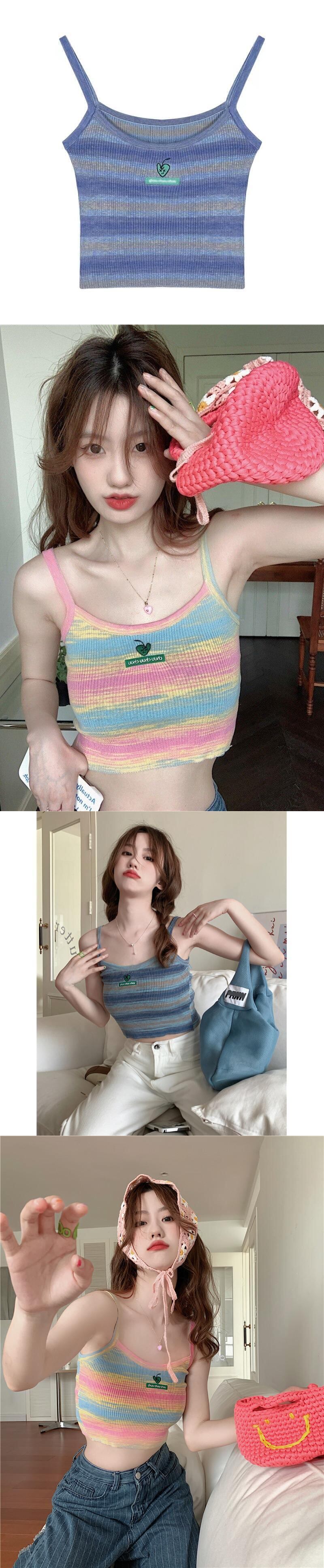 レインボー ニット キャミソールニッチ インサイド ウェア純粋欲望風ホット ガール ショート スイート スパイシー ノースリーブ トップ ガールズ 大人ガーリー スウィート キュート カジュアル ピュア