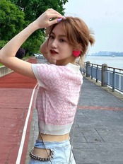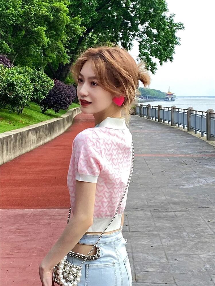 夏スウィートショートニットセーターハートプリント半袖シャツスリムへそホットガールスモールトップ Tシャツ ハーフスリーブ 大人ガーリー キュート カジュアル サマー 夏物