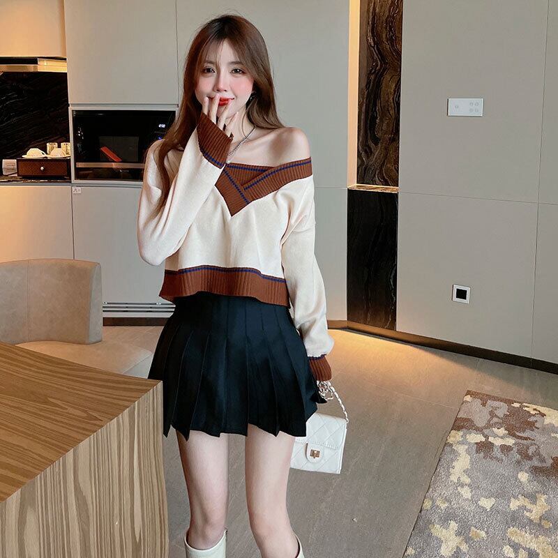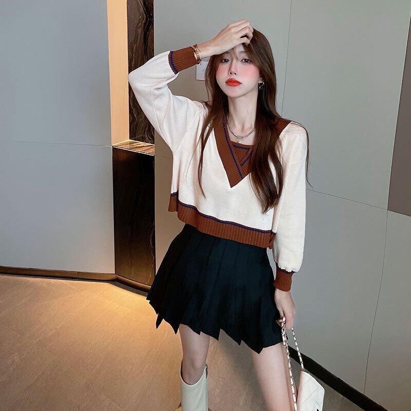 Gothiscyn 冬ショートスカートセット V ネックセーター Jk プリーツスカート 2 点セットプレッピー衣装 ウィンター 冬物 Vネック