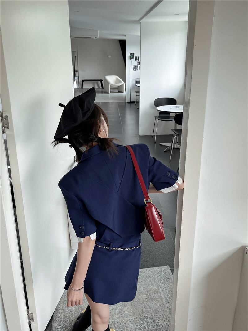 レトロホットガールスーツ夏半袖ターンダウン襟コートウエストミニスカート 2 点セット服 サマー 夏物