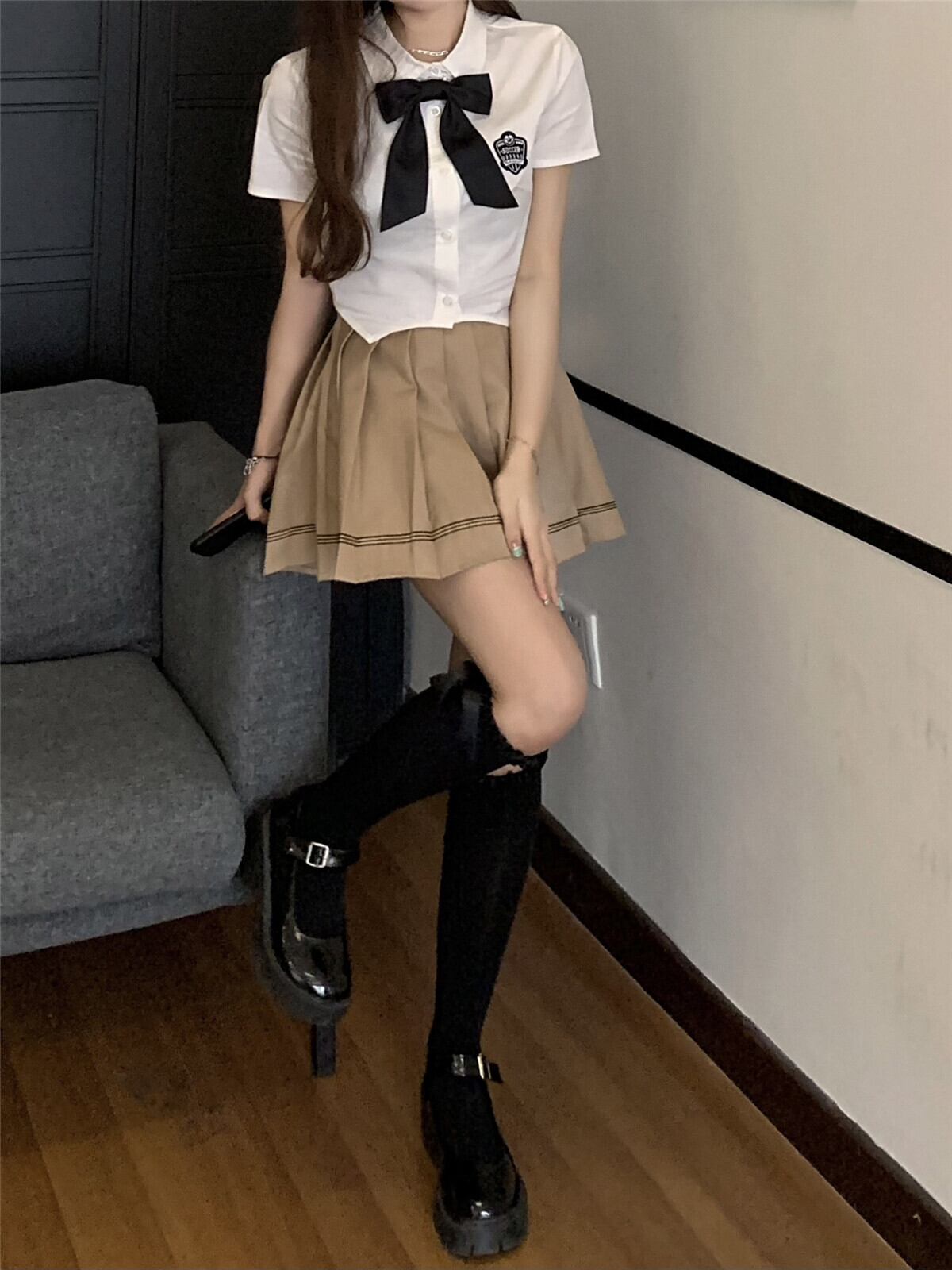 Gothiscyn スーツシャツ + プリーツスカート夏春スキニーセクシースカートプレッピースーツ A ラインスカートストリート学生セット スプリング 春物 サマー 夏物 Aライン