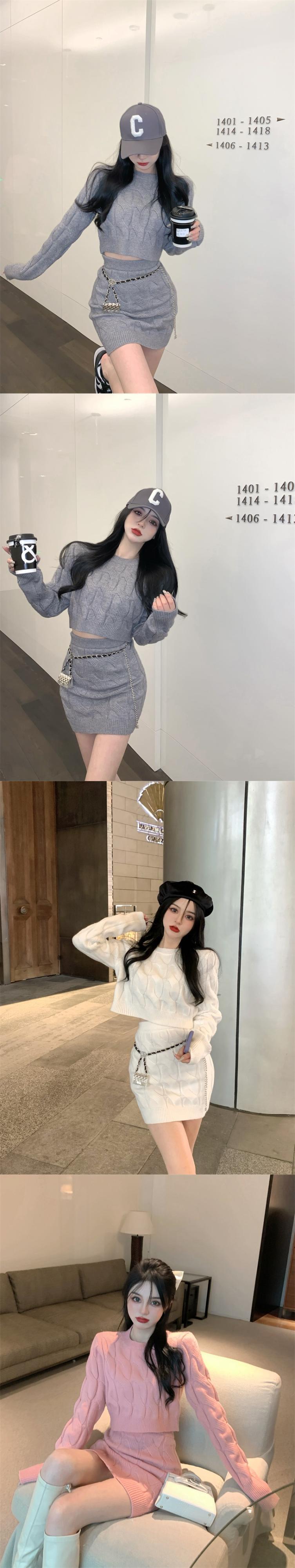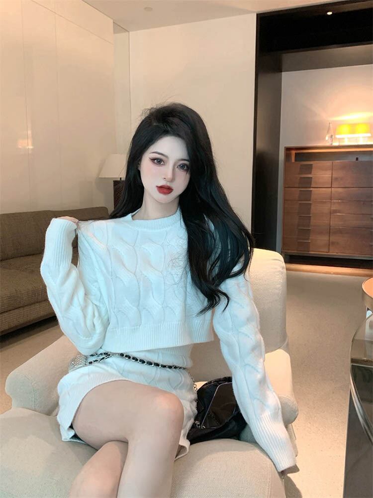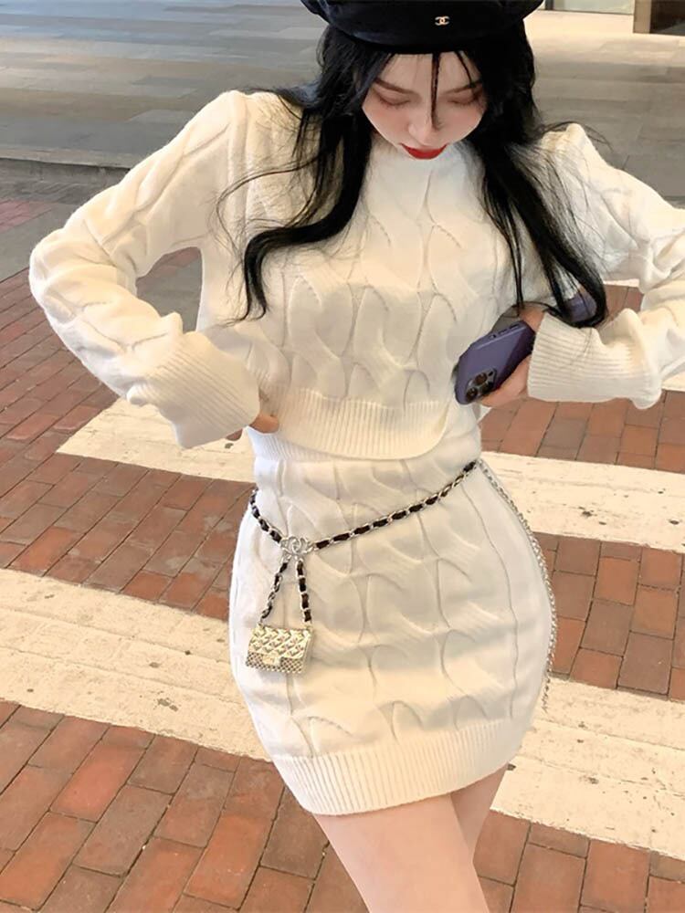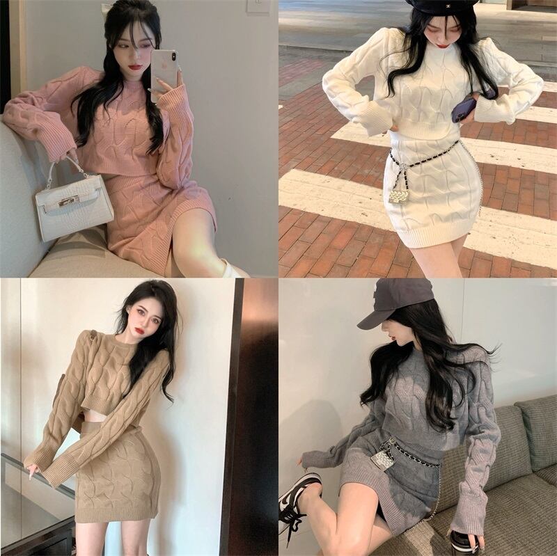 ツーピースセットレディース衣装甘いレトロセーターヒップラップスカート梨花服秋/冬スカートセット 大人ガーリー スウィート キュート カジュアル オータム 秋物 ウィンター 冬物 ソリッドカラー