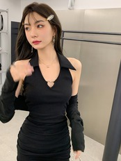 Gothiscyn セクシーホットガールホルターネック長袖ブラウスツーピーススーツ純粋欲望背中開いたドレススキニー夏 ロング サマー 夏物 ピュア