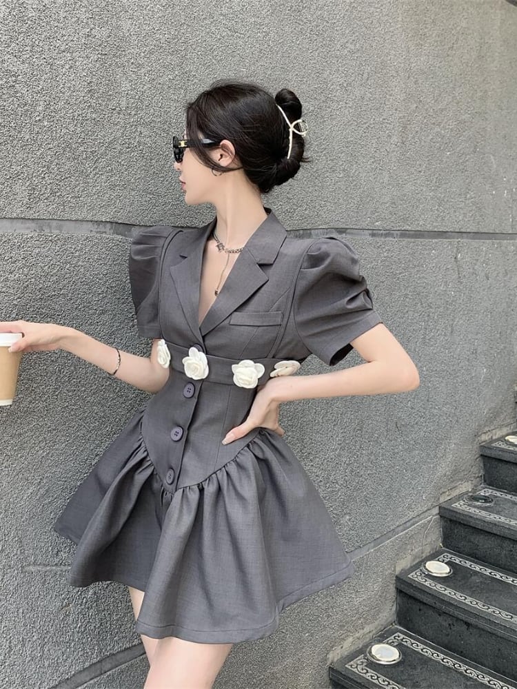 Gothiscyn グレースーツクロップトップブレザー + スリングドレス 2 点セットシックオフィスレディ A ラインプリーツドレスネクタイ花夏 サマー 夏物 Aライン フラワーデザイン 会社 学校 通勤や通学にも