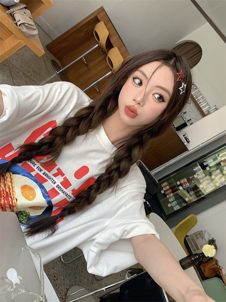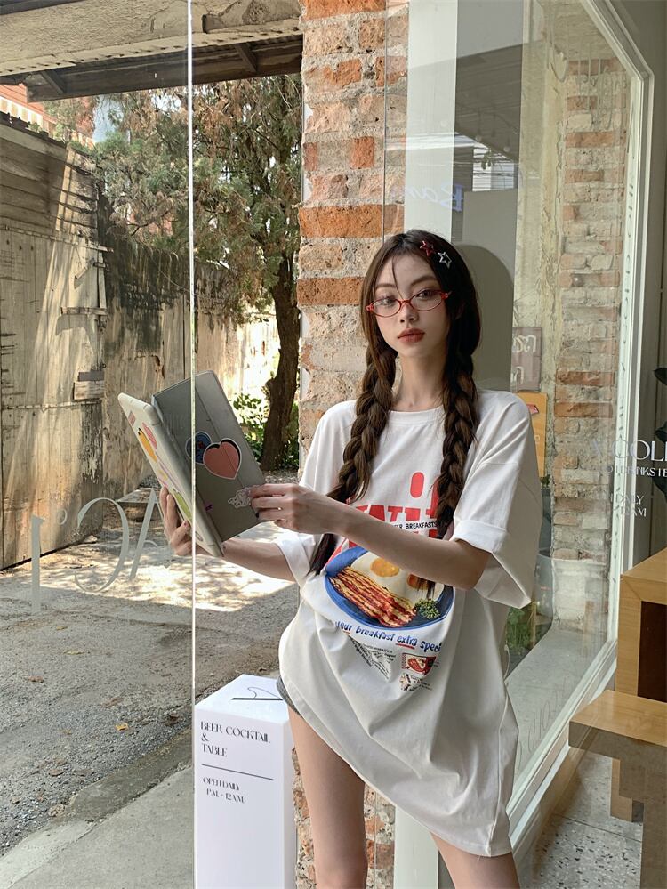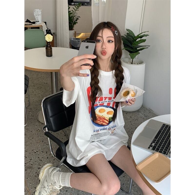 ホットガールルーズファニープリント半袖 Tシャツラウンドネック特大生き抜くトップ服 Oネック