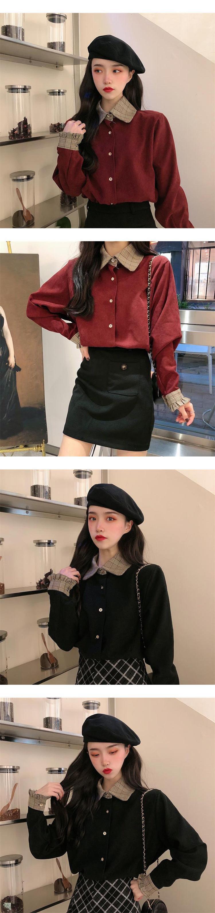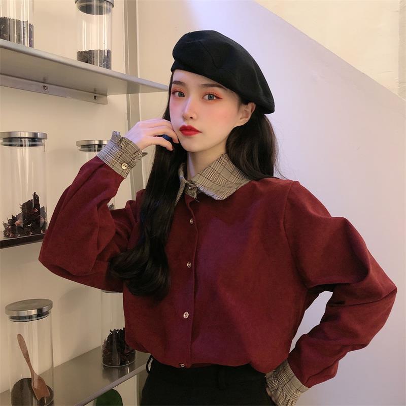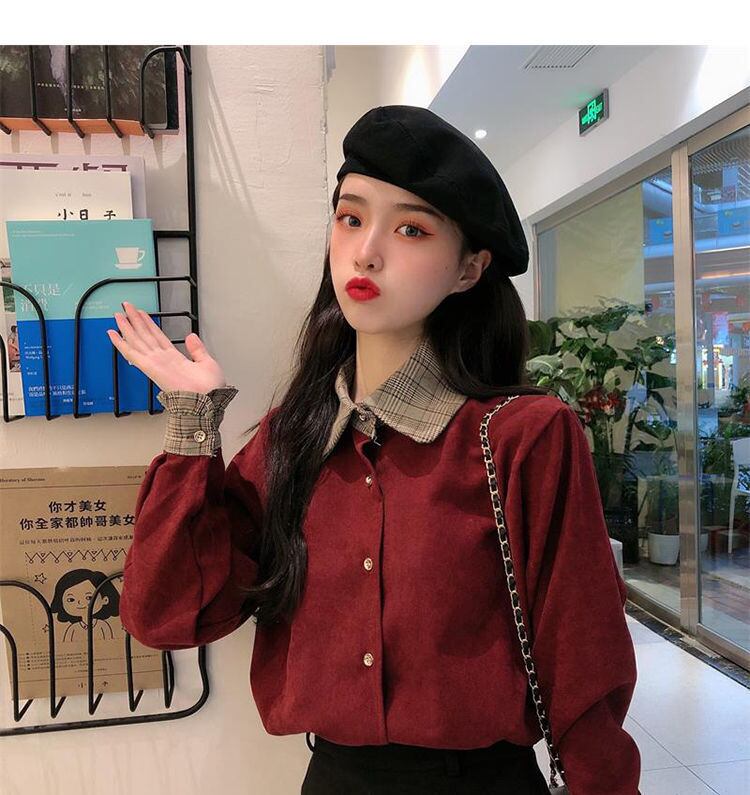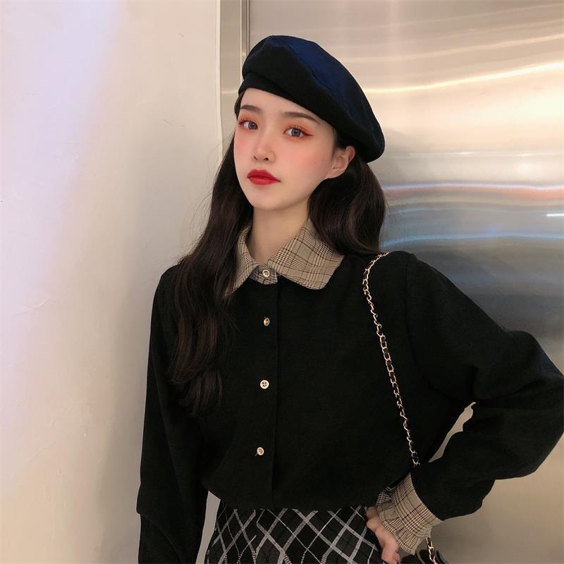 Gothiscyn レディース ブラウス レトロ 無地 長袖 シャツ 秋 ルーズ プレッピー ブラウス レディース トップス ロング ソリッドカラー