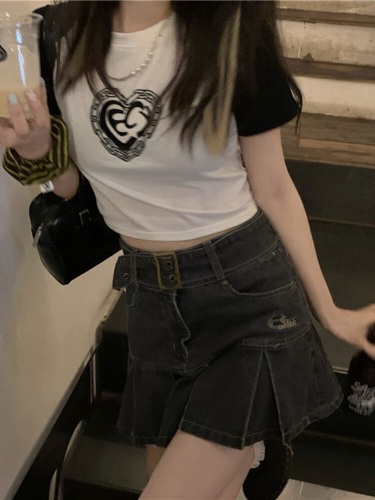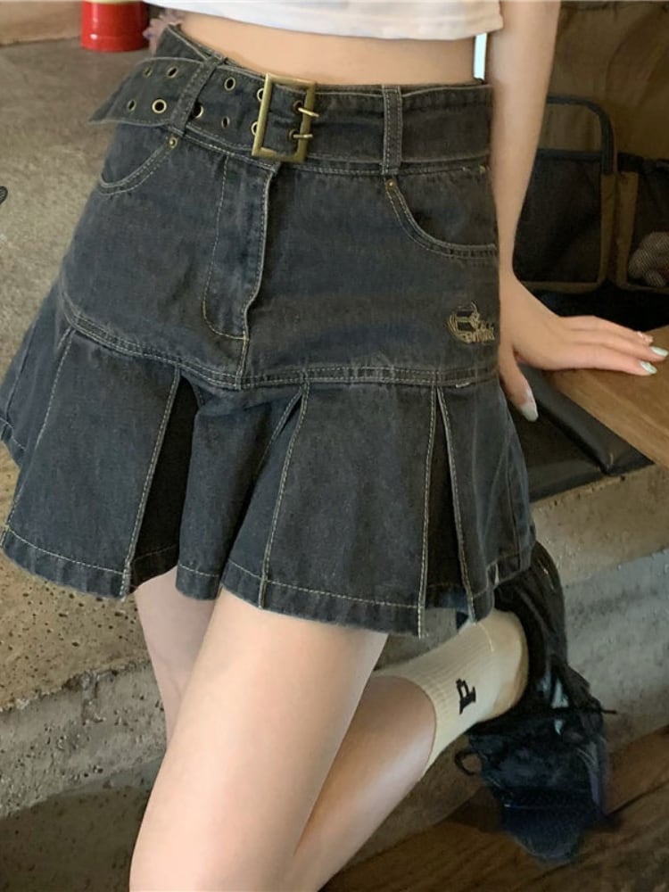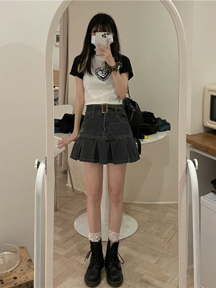 Gothiscyn スカート デニム黒グレー夏プリーツ ゴシック スカート Y2k A ライン スカート ジーンズ女子高生 ブラック サマー 夏物 Aライン