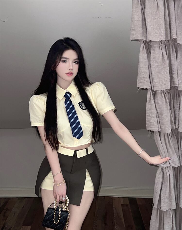 ブラウス ミニスカート セット ソルティ プレッピー スタイル ツーピース スーツ 夏 甘い スパイシー シャツ スカート 大人ガーリー スウィート キュート カジュアル サマー 夏物