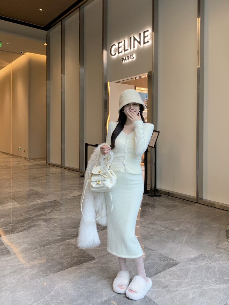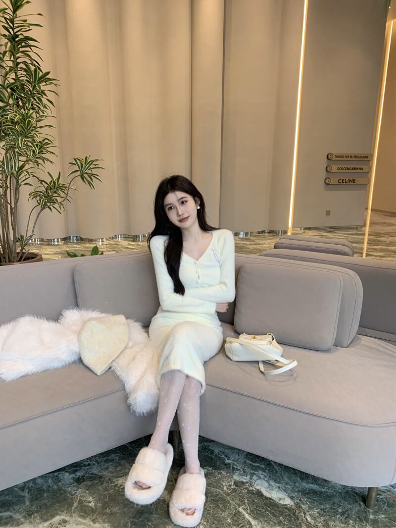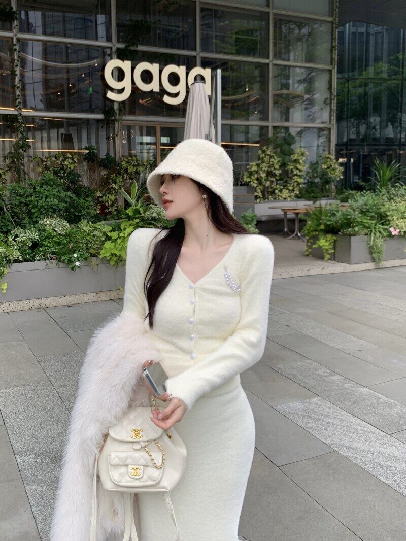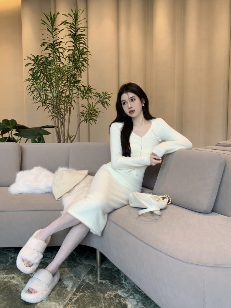 オフィスレディ ジェントルスーツ 気質 Vネック ニット カーディガン レディース 冬 ロングウエスト スリムスカート 2点セット ウィンター 冬物 会社 学校 通勤や通学にも