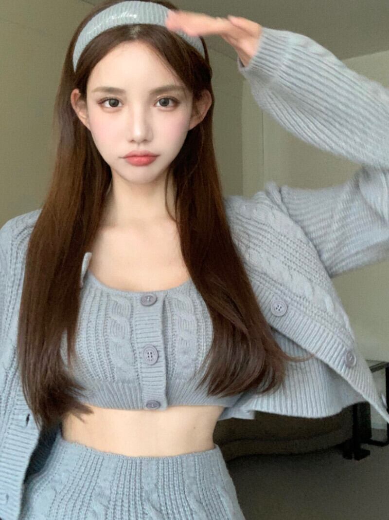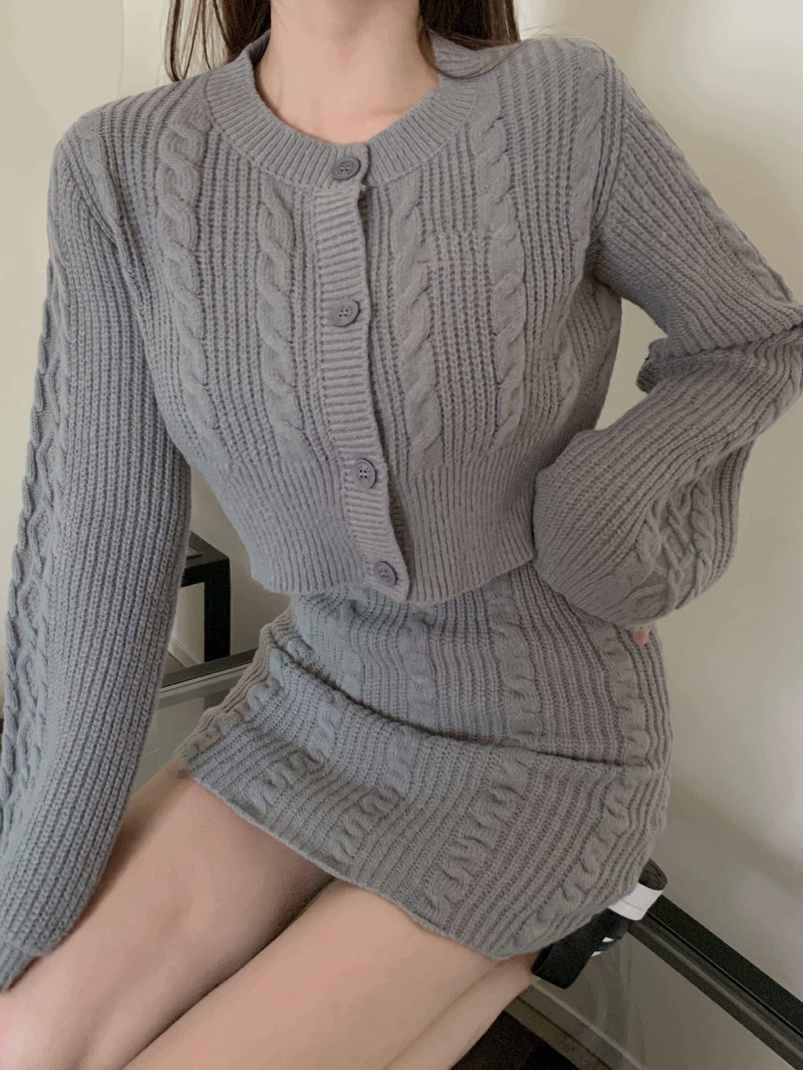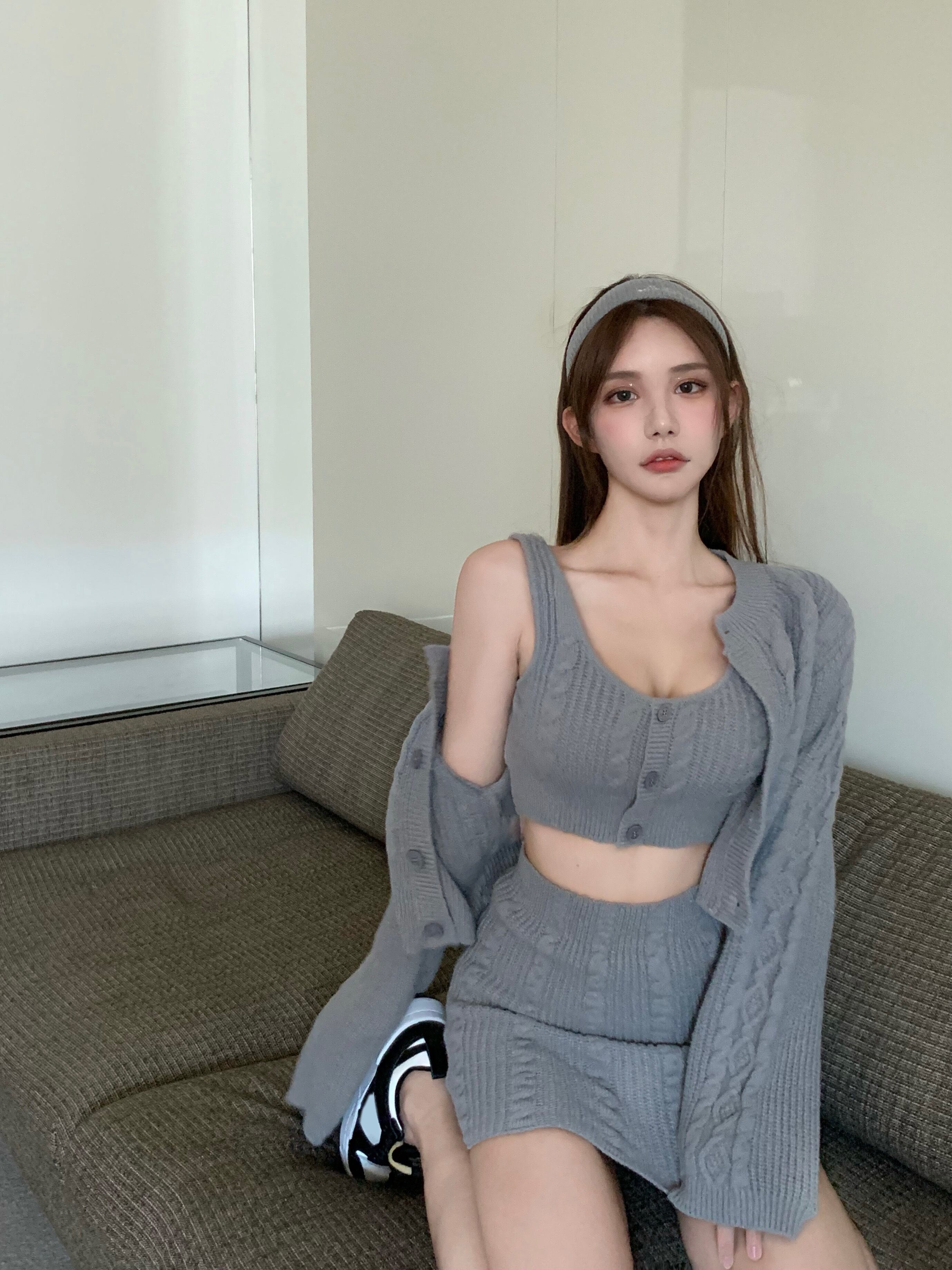 スウィートガールスーツレディースニットセーターショールカーディガンショートコートサスペンダーベストウエストスカート3点セット 大人ガーリー キュート カジュアル