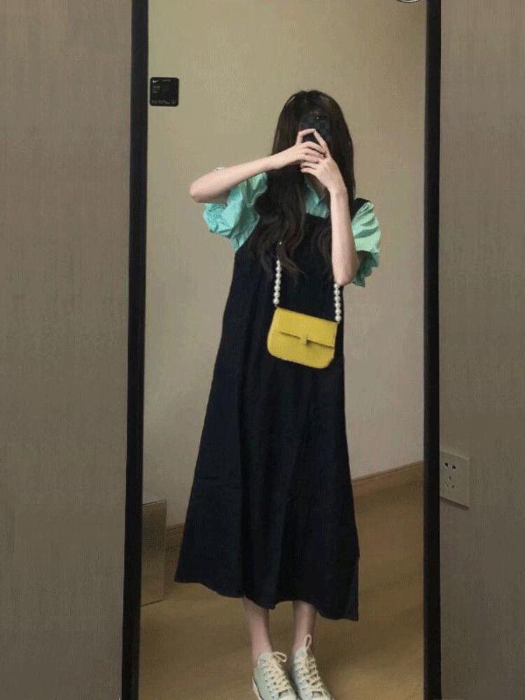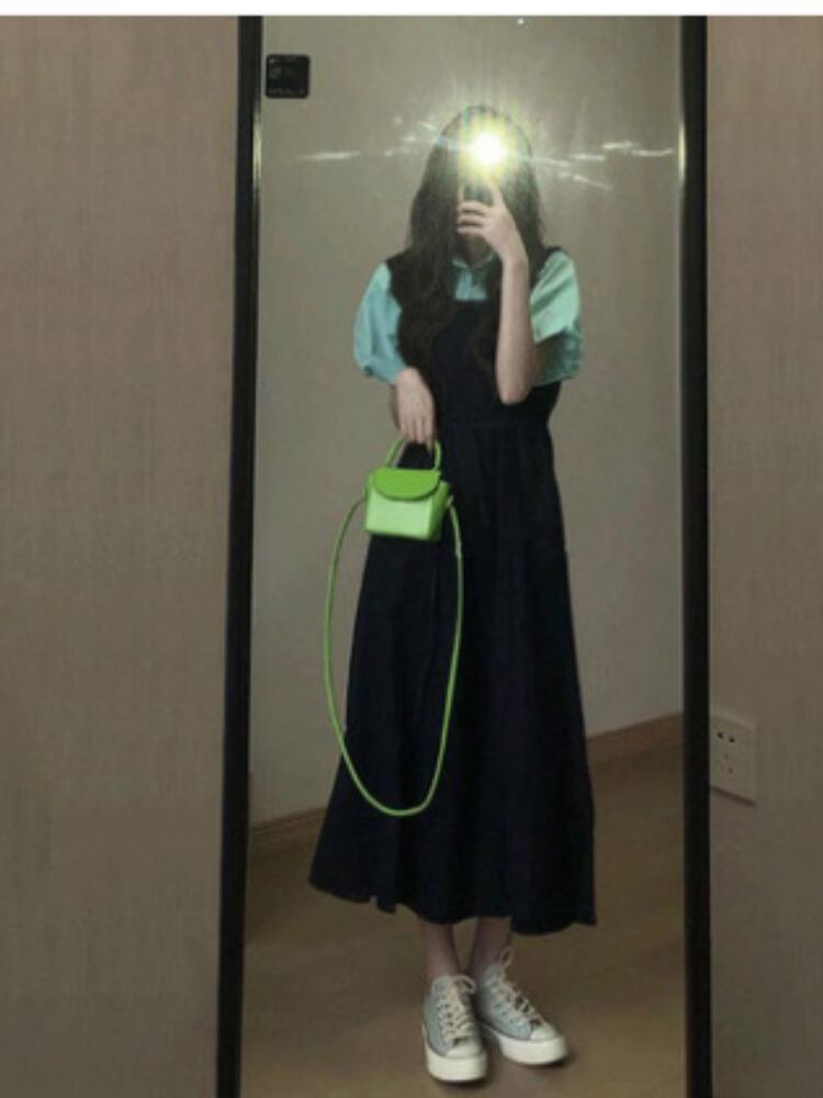 Gothiscyn プレッピー スタイル サスペンダー ドレス グリーン シャツ ツーピース スーツ夏スーツ フランス学生 サマー 夏物