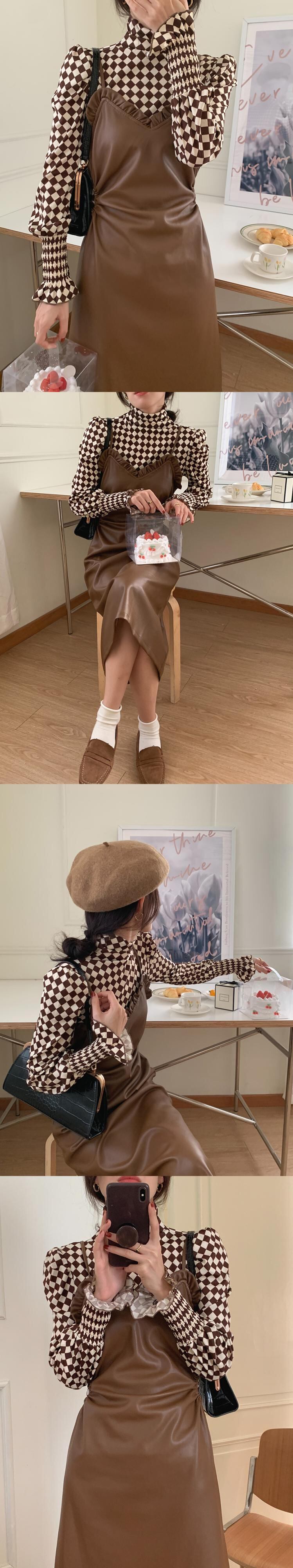 通勤 スーツ タートルネック チェック シャツ レディース スリム レザー ドレス レディース 春秋 ツーピース セット 服 スプリング 春物 オータム 秋物