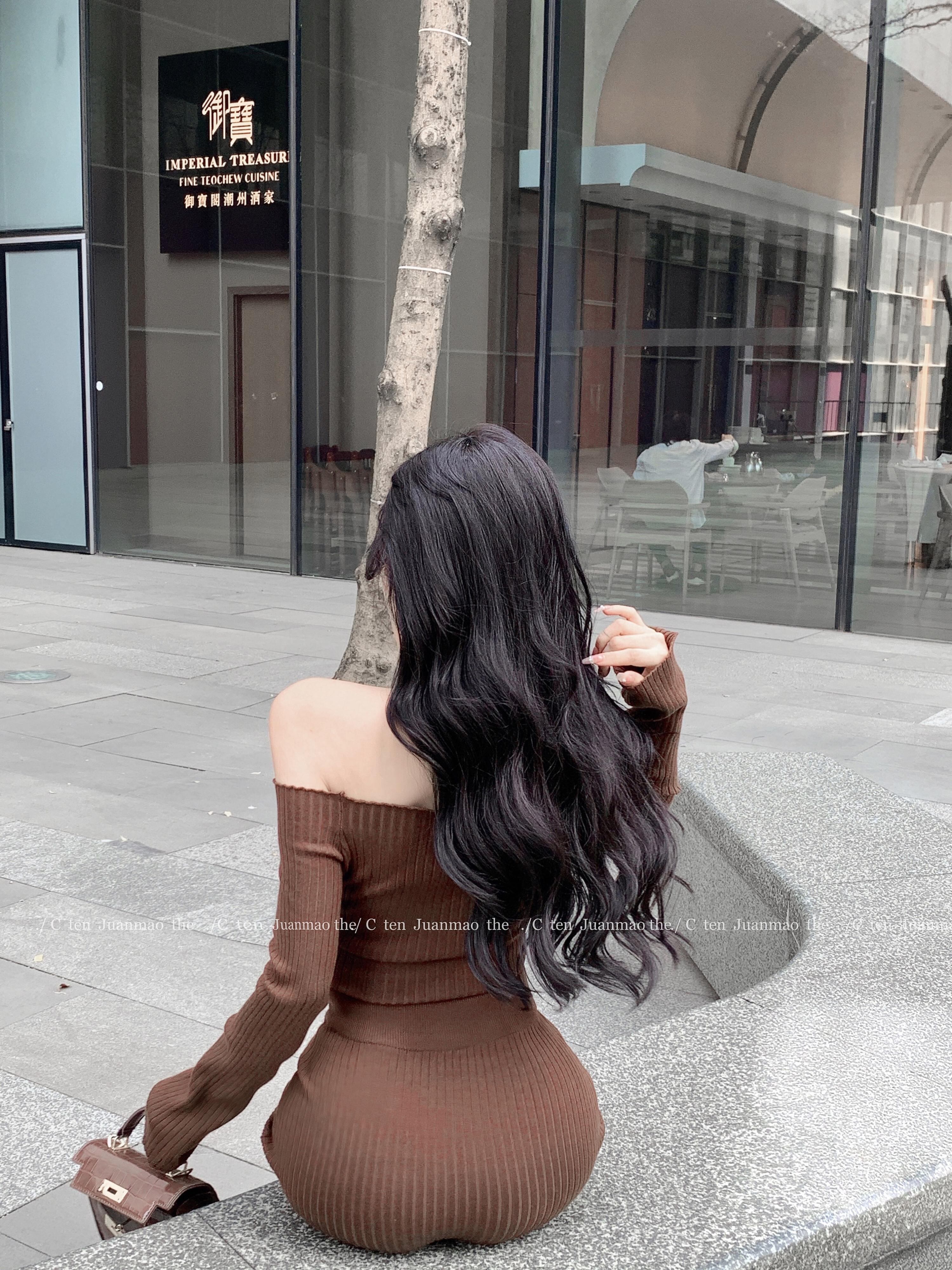 ホットガールセクシースーツスラッシュネックオフショルダー長袖トップウエストヒップラップスカート 2 点セット服 ロング