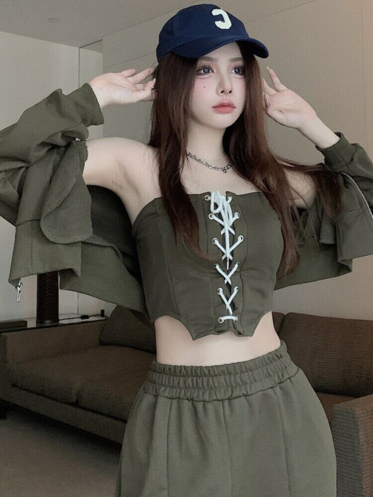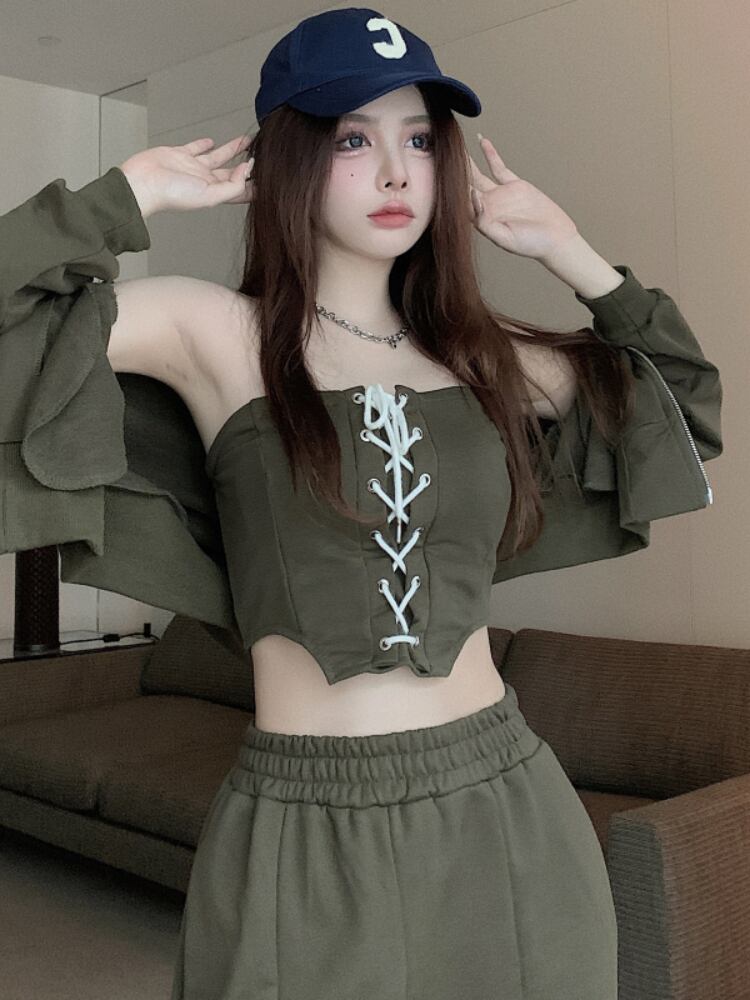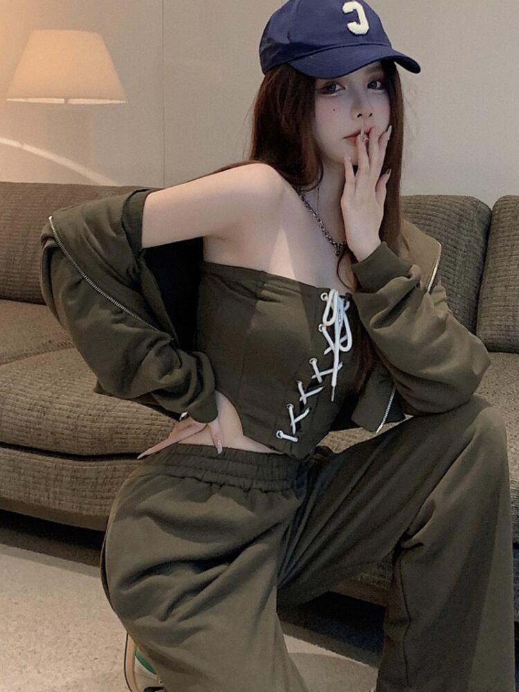 Gothiscyn スポーツスーツ スウェットシャツ 包帯 チューブトップ スウェットパンツ 3点セット シックスーツ 春 秋 スプリング 春物 オータム 秋物