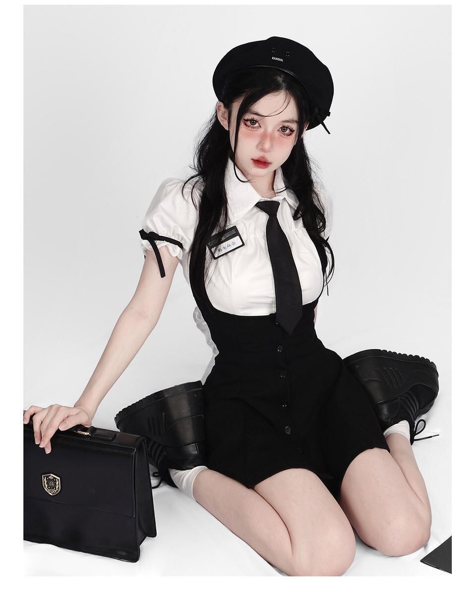 アメリカン アカデミー スタイル スーツスリム ウエスト シャツ蝶ネクタイ ストラップ ショート a ライン ドレス 2 点セット服 リボン Aライン
