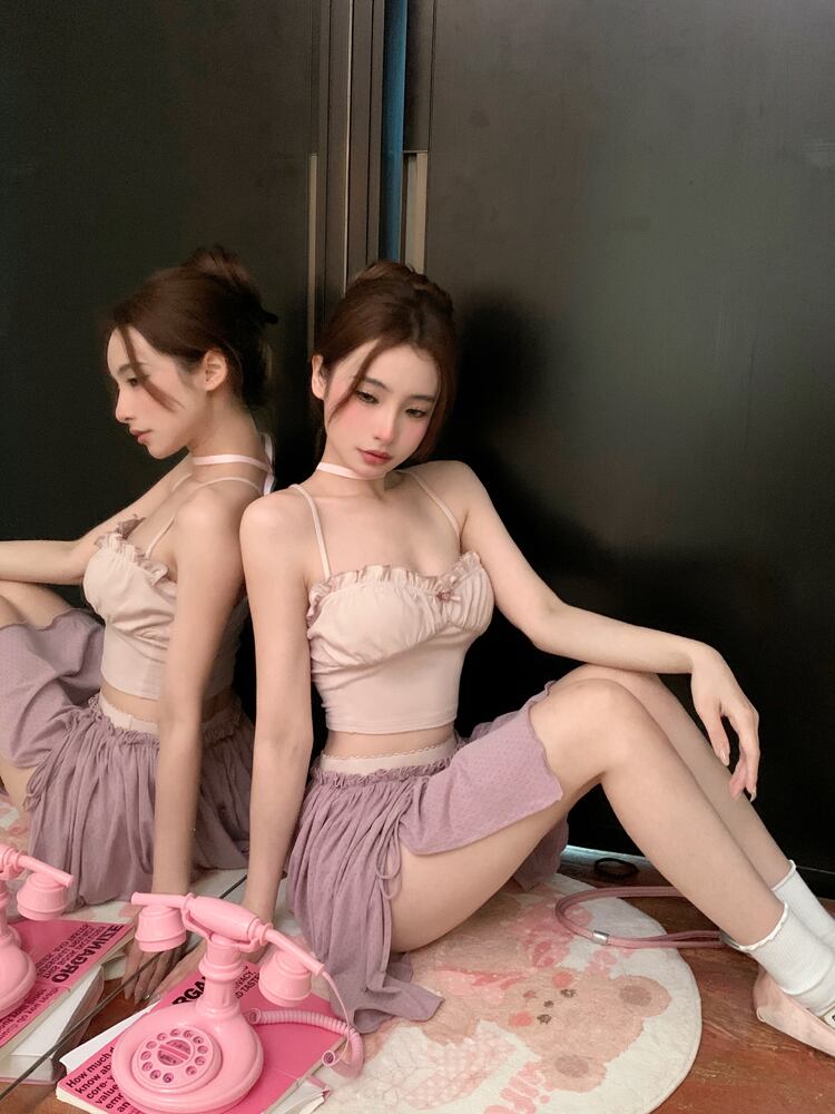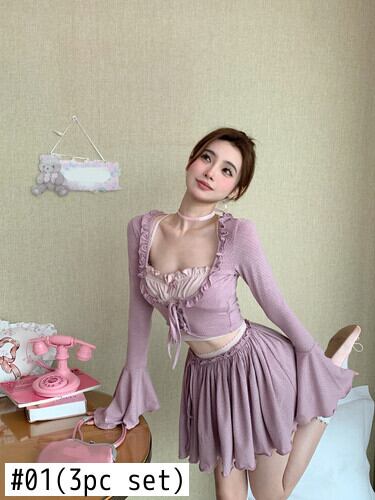 Sweet Girl スーツ レディース フレアスリーブ ニット ショートトップ サスペンド タンクトップ ウエストライン Aライン ミニスカート 3点セット 大人ガーリー スウィート キュート カジュアル