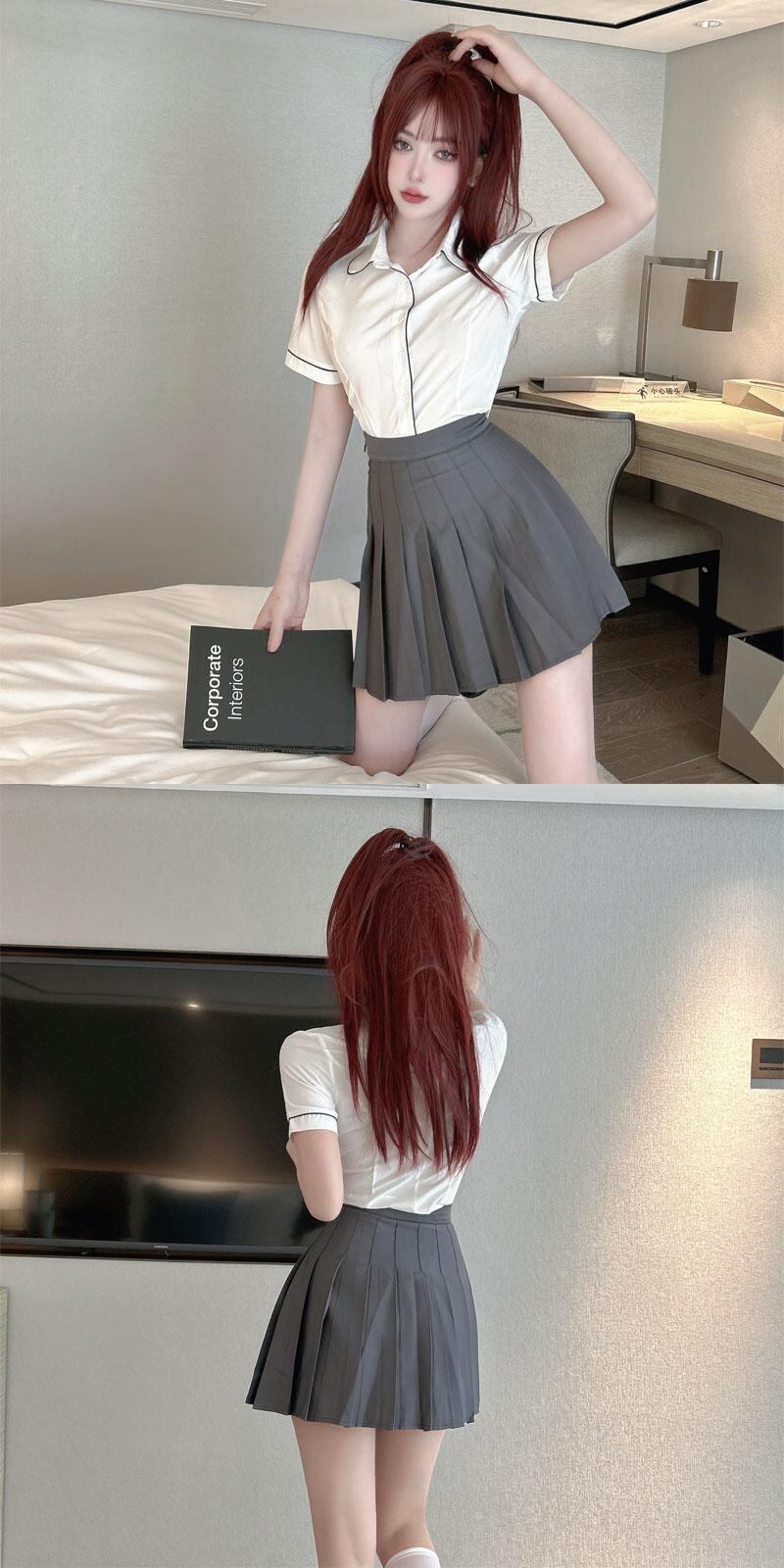 夏アカデミースタイルスーツスリムフィット半袖白シャツ Wasit プリーツミニスカート 2 点セット服 ホワイト サマー 夏物
