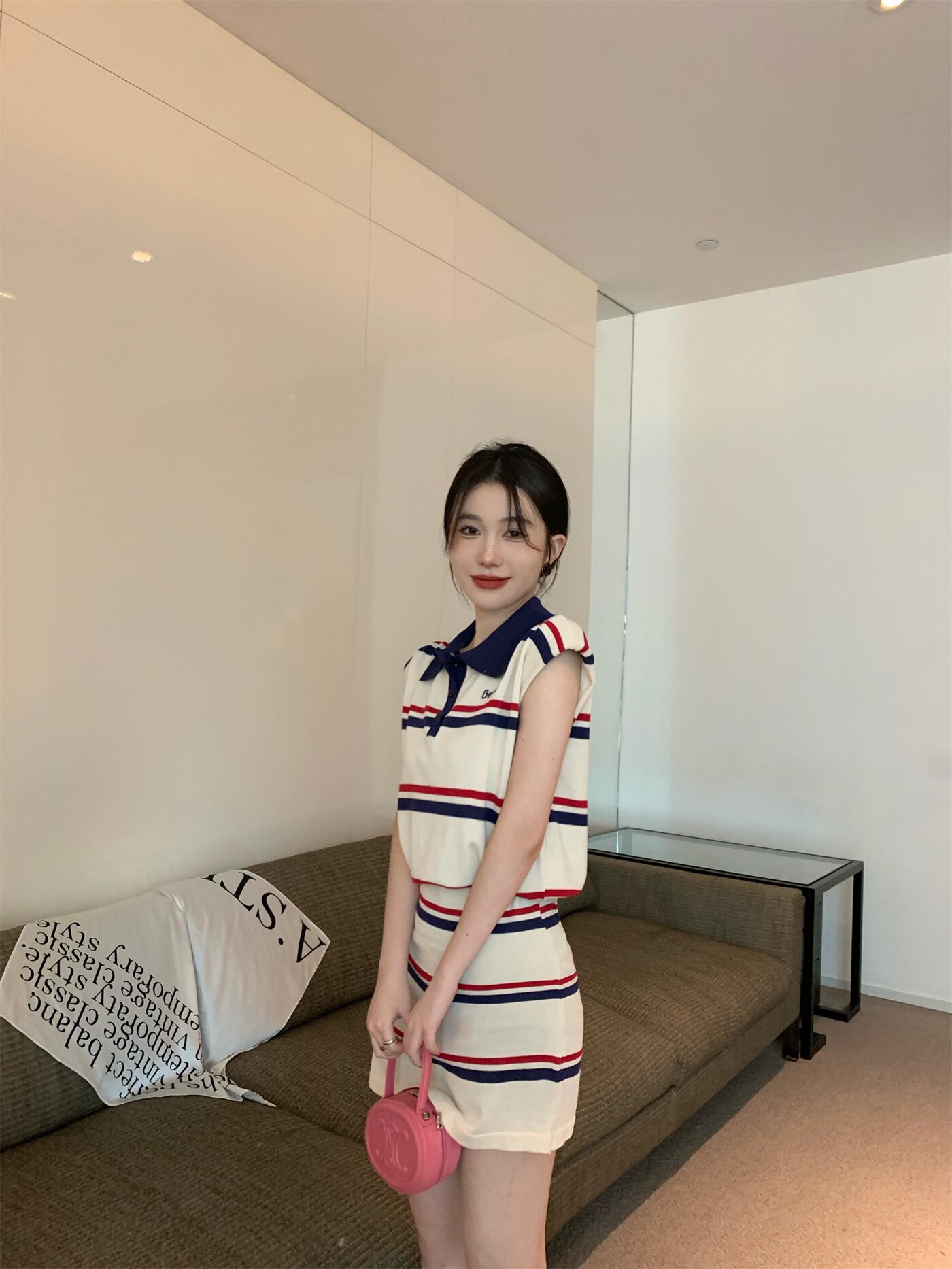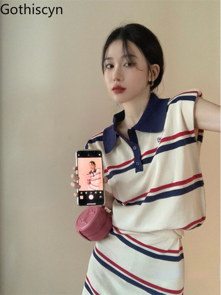 Gothiscyn スカートセット衣装ストライプスーツショートトップ夏 A ラインスカート 2 点セット Y2k サマー 夏物 Aライン