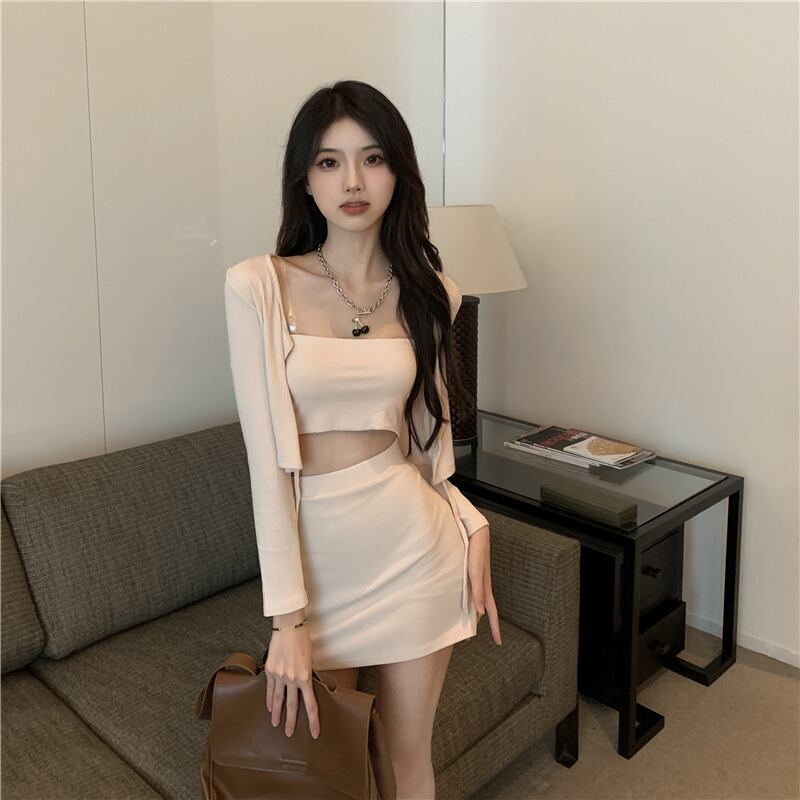 Gothiscyn 夏スリーピーススーツセクシーレースクロップチューブトップショートカーディガンスカートホットガールシックトレンド サマー 夏物 ソリッドカラー