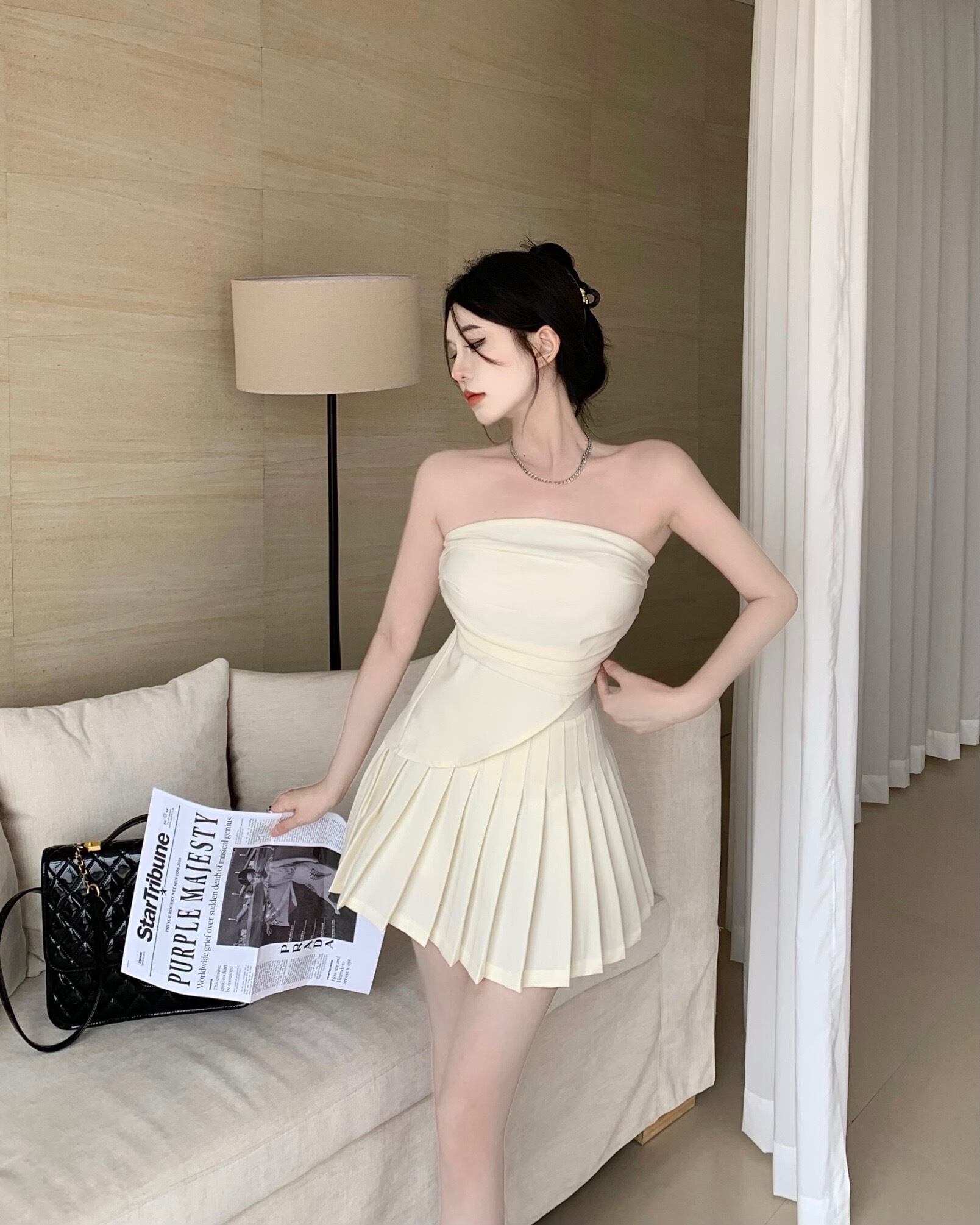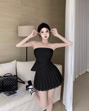 スウィートガールサマースーツ不規則セクシーホットガールストラップレスベストウエストプリーツスカートツーピースセット服 大人ガーリー キュート カジュアル 夏物